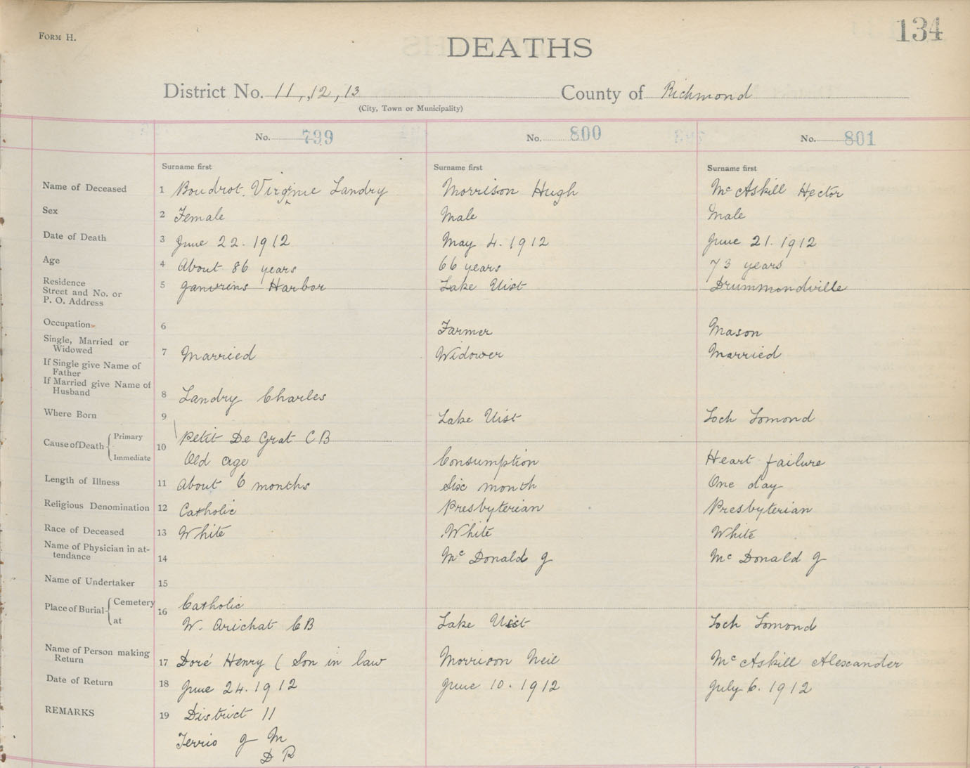 Death Registration: Year: 1912 book: 16 page: 134 number: 799