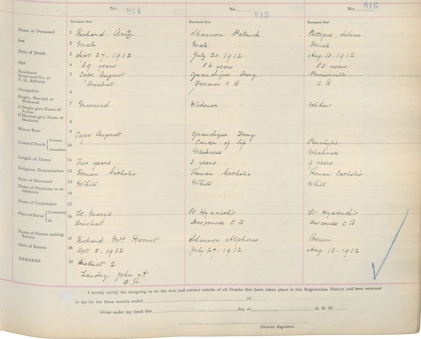 Death Registration: Year: 1912 book: 16 page: 136 number: 814