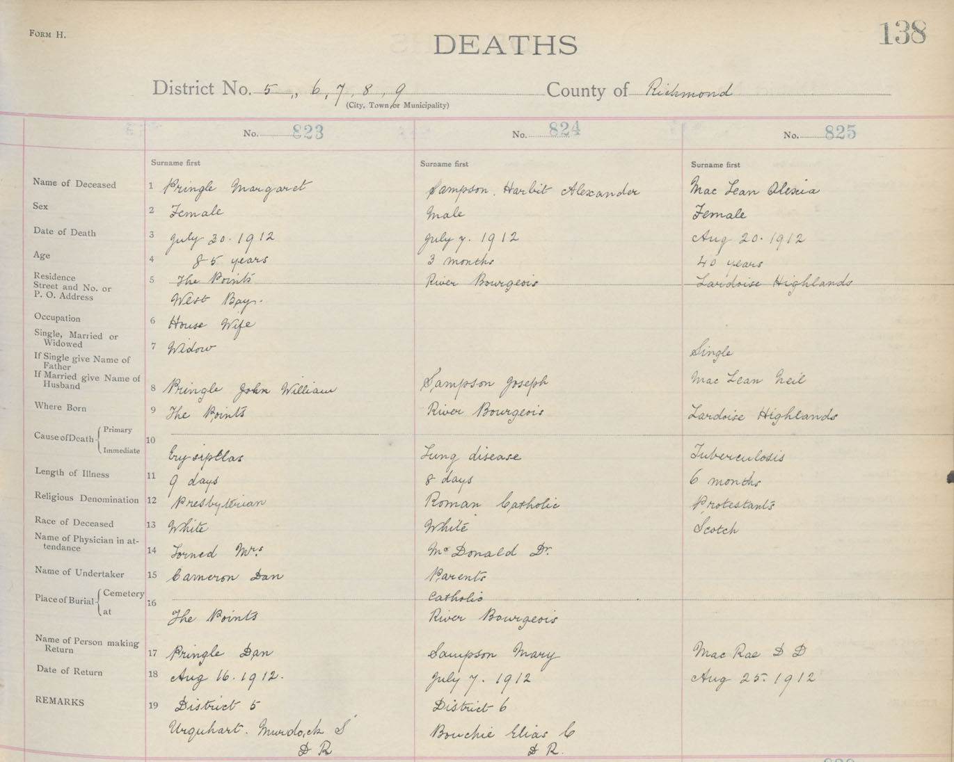 Death Registration: Year: 1912 book: 16 page: 138 number: 823