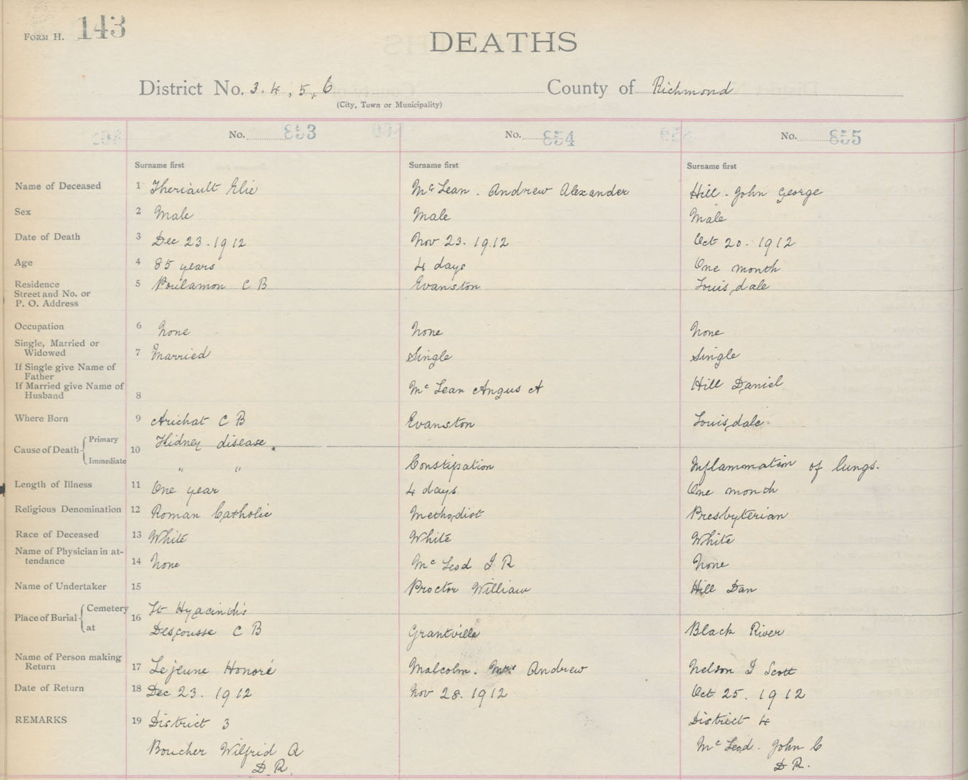 Death Registration: Year: 1912 book: 16 page: 143 number: 853