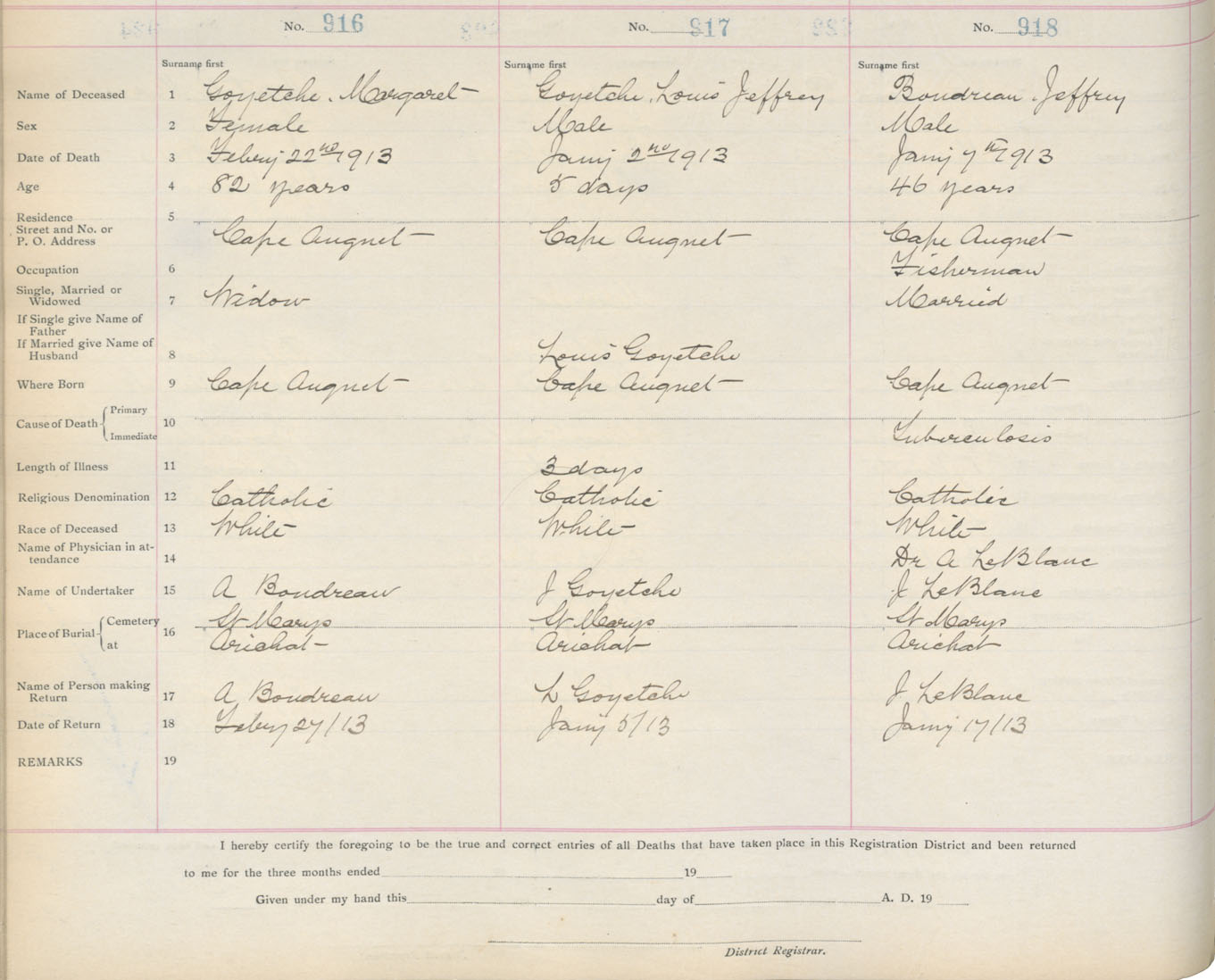 Death Registration: Year: 1913 book: 16 page: 153 number: 916