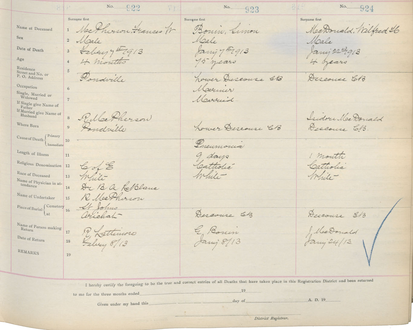 Death Registration: Year: 1913 book: 16 page: 154 number: 922