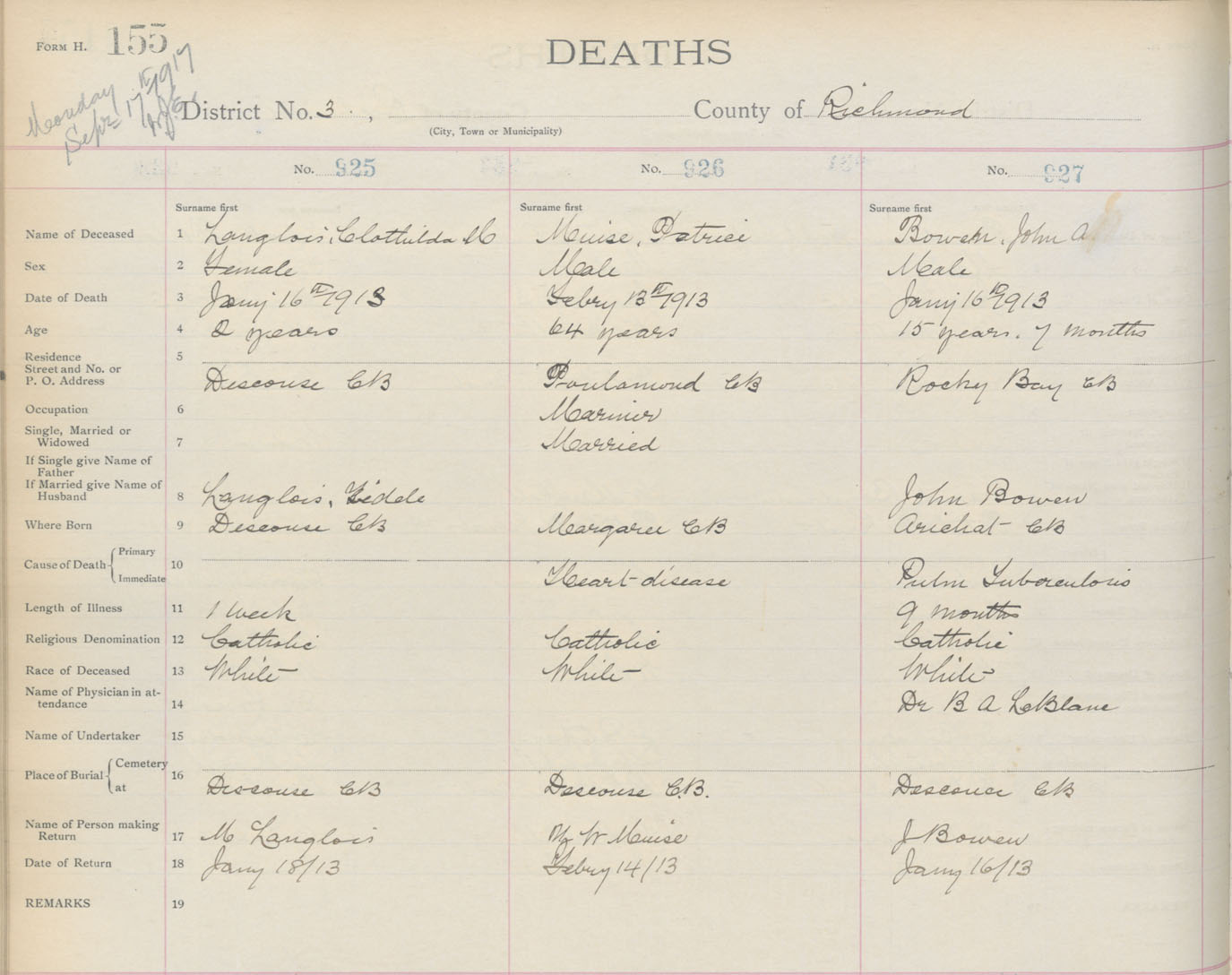 Death Registration: Year: 1913 book: 16 page: 155 number: 925