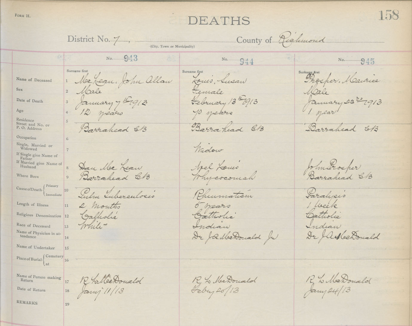 Death Registration: Year: 1913 book: 16 page: 158 number: 943