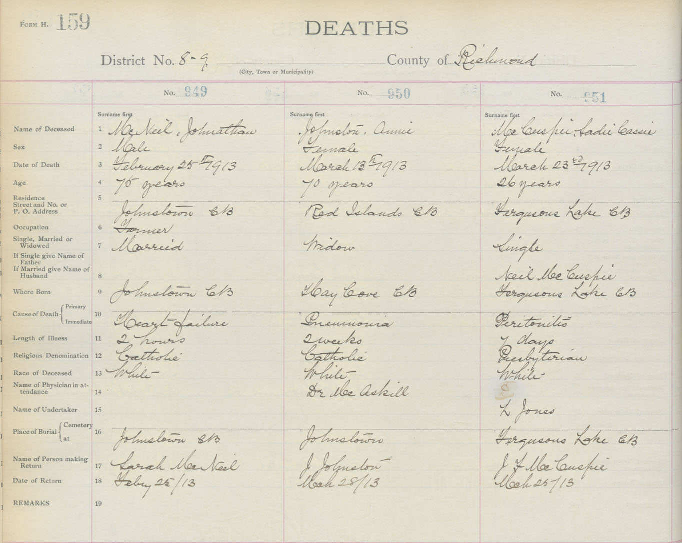 Death Registration: Year: 1913 book: 16 page: 159 number: 949