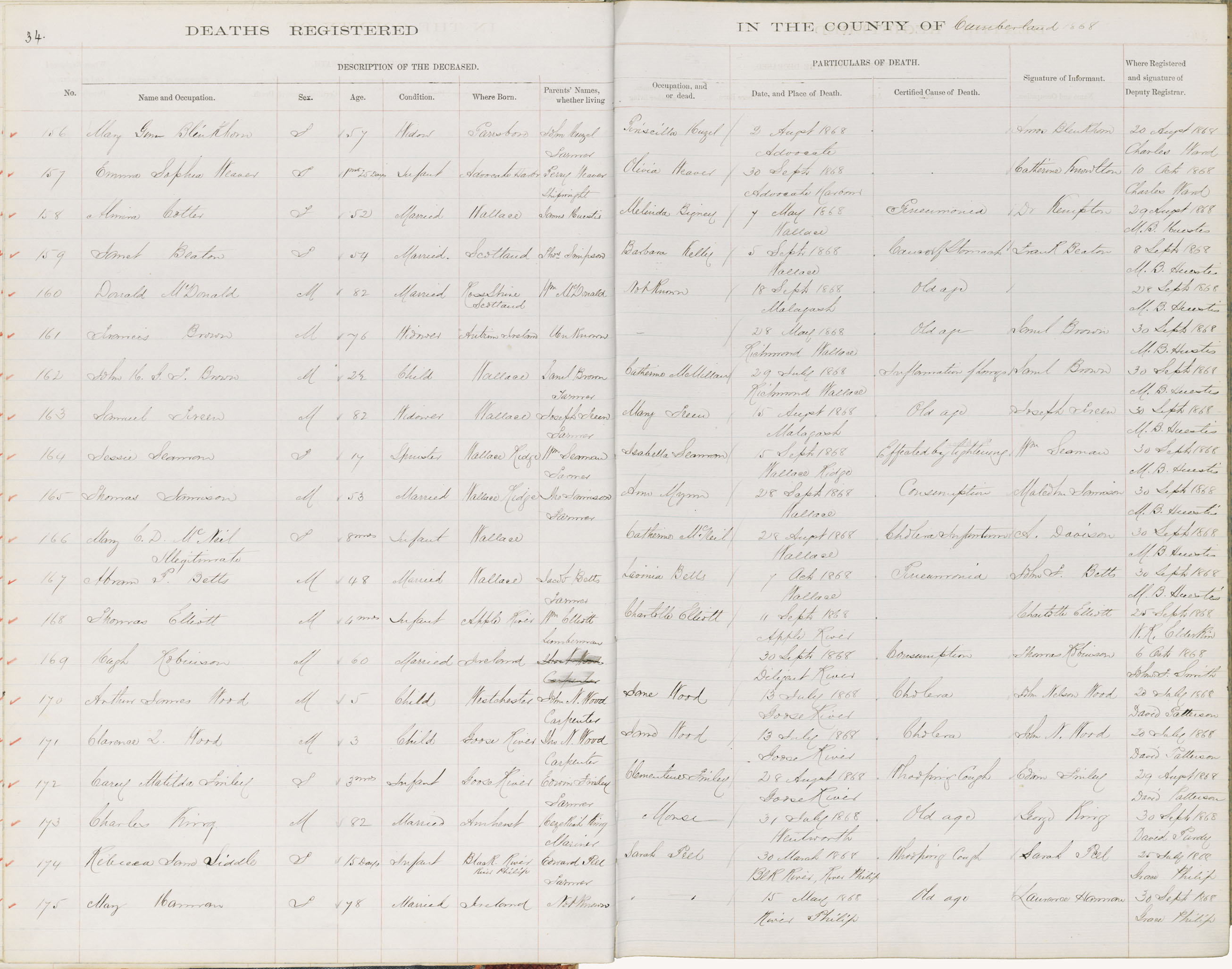 Death Registration: Year: 1868 book: 1805 page: 34 number: 175