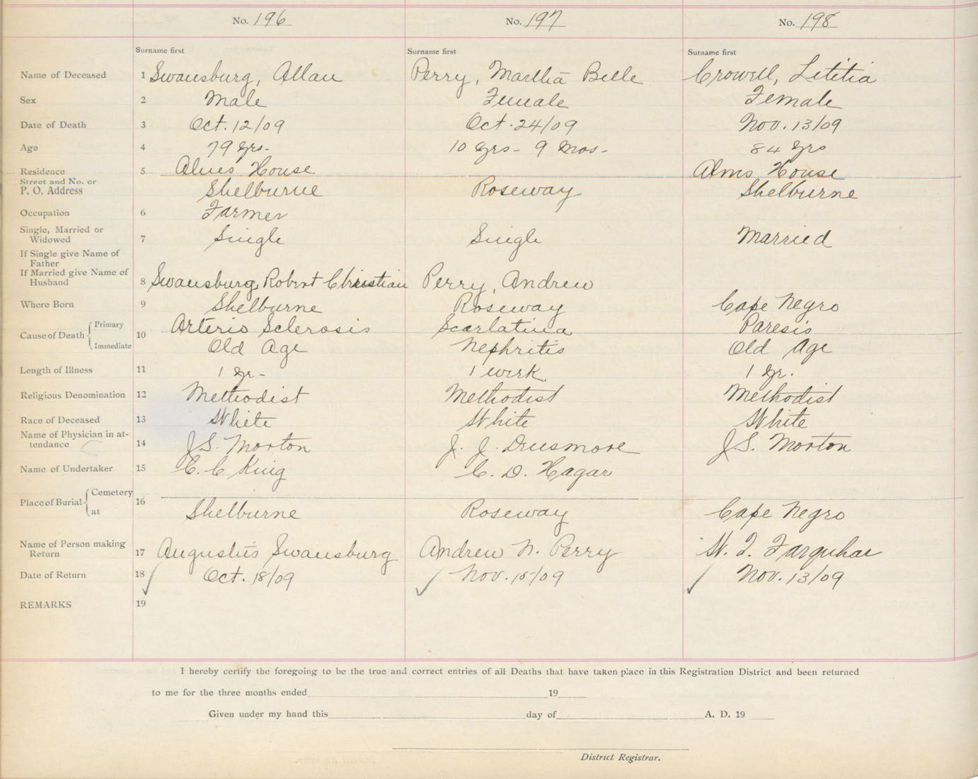 Death Registration: Year: 1909 book: 17 page: 33 number: 198