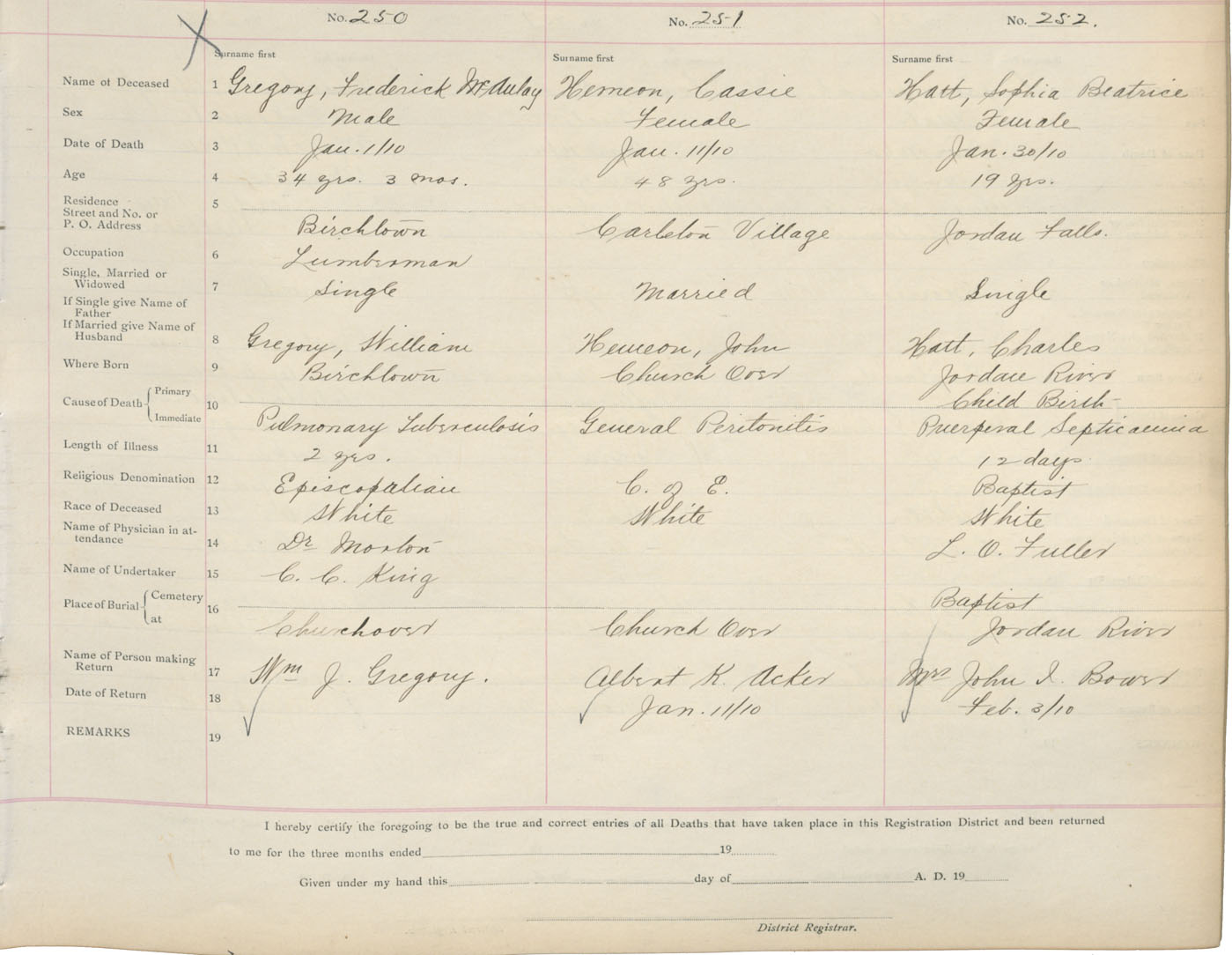 Death Registration: Year: 1910 book: 17 page: 42 number: 252