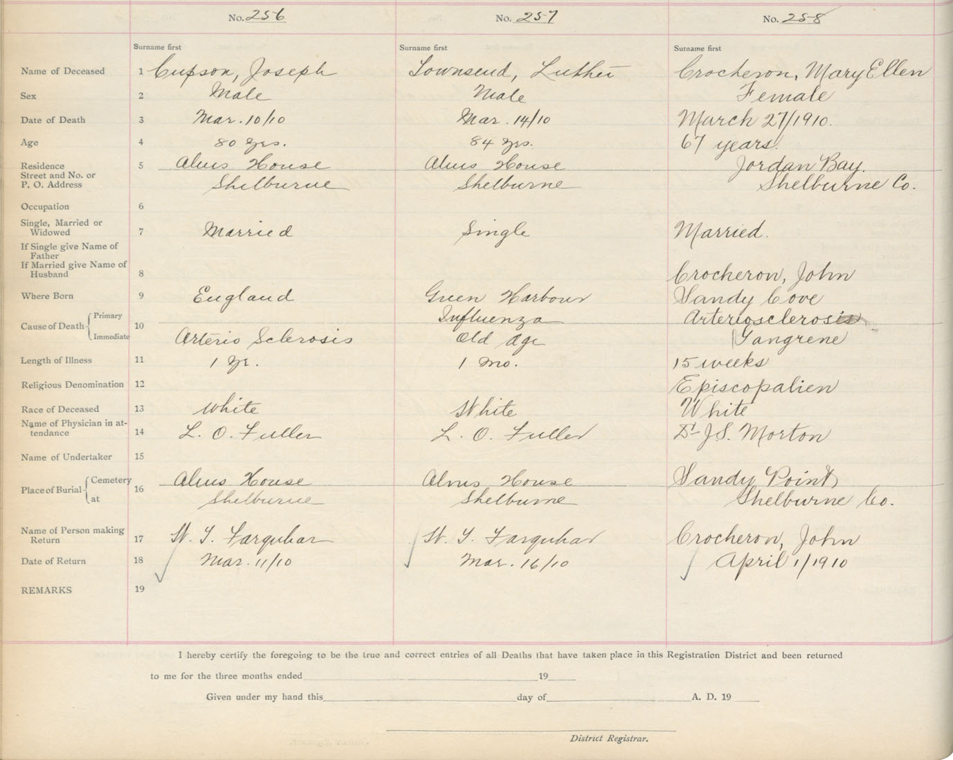 Death Registration: Year: 1910 book: 17 page: 43 number: 258