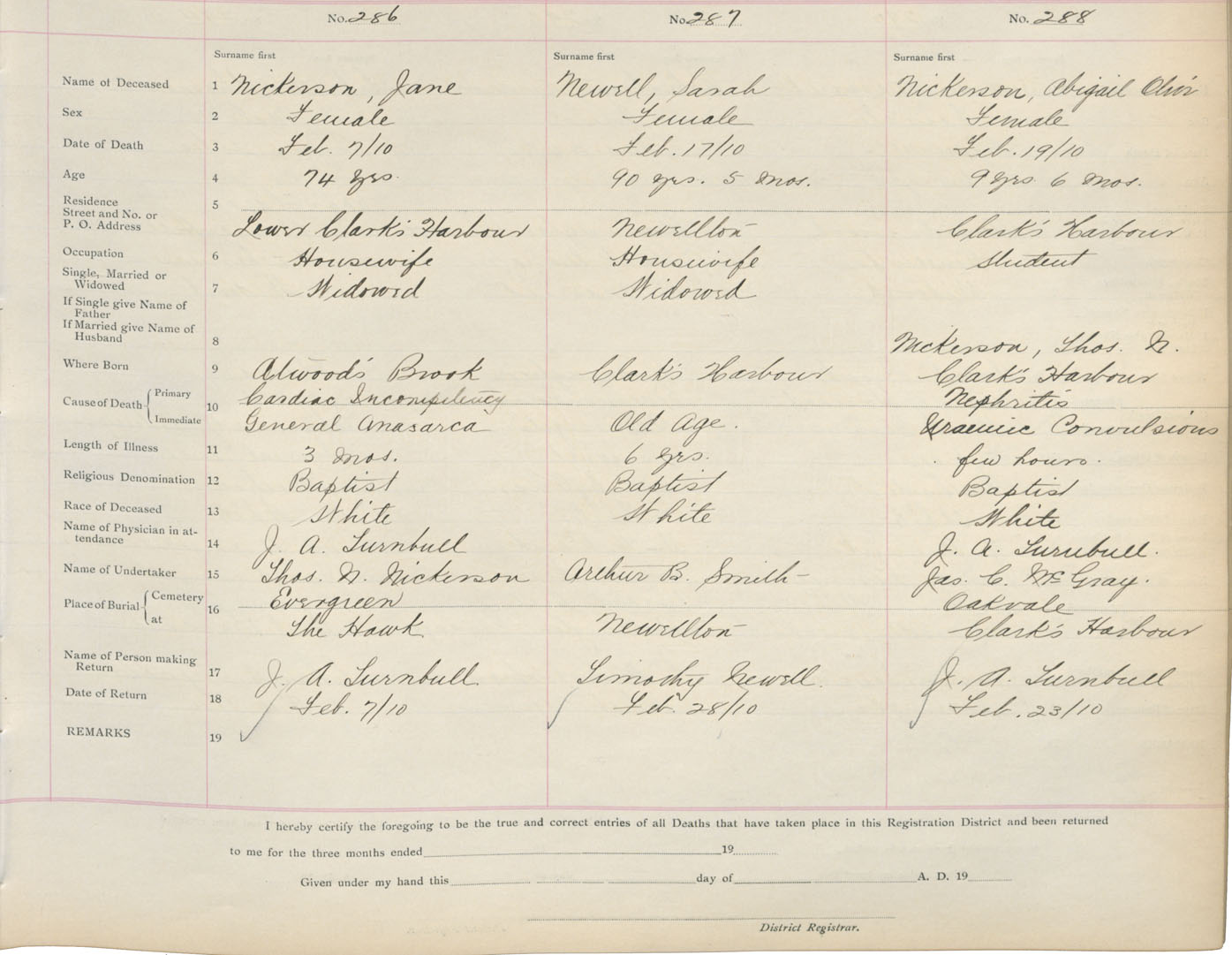 Death Registration: Year: 1910 book: 17 page: 48 number: 288