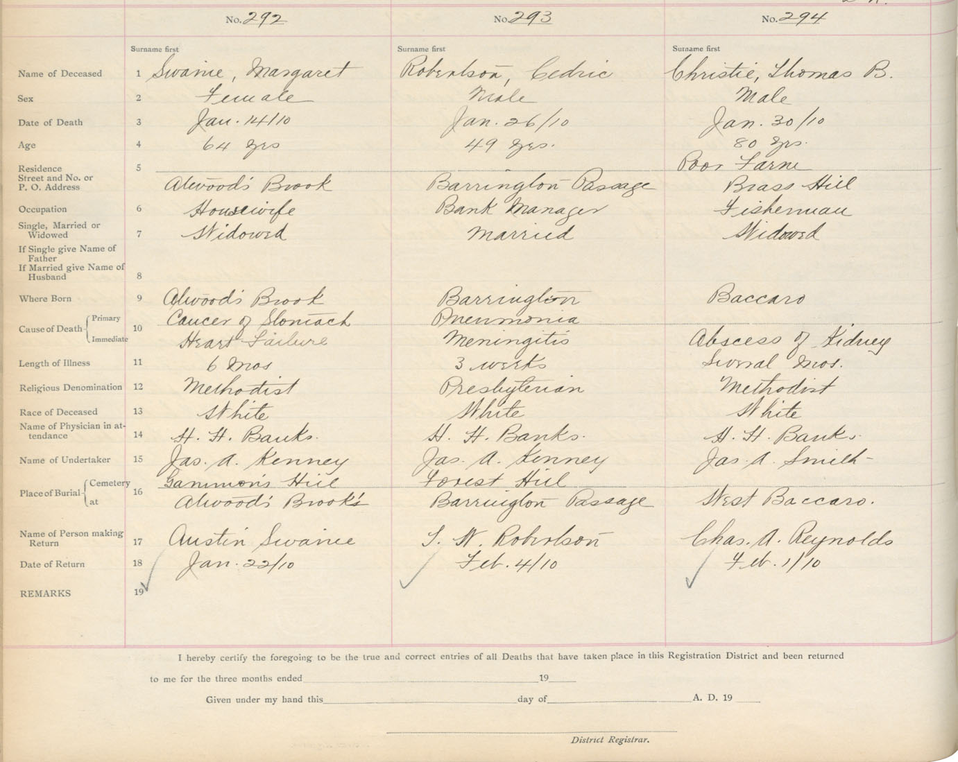 Death Registration: Year: 1910 book: 17 page: 49 number: 294