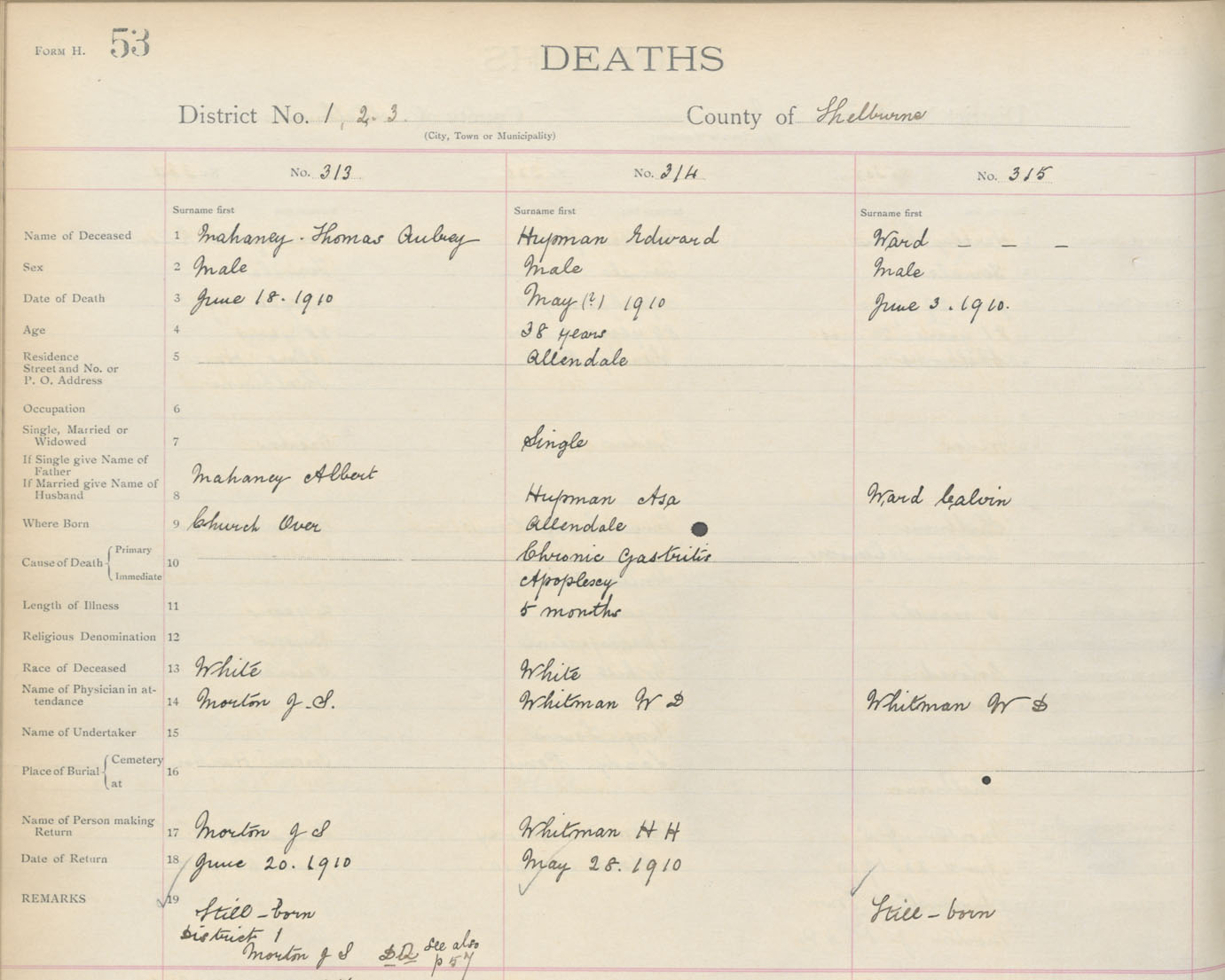 Death Registration: Year: 1910 book: 17 page: 53 number: 315