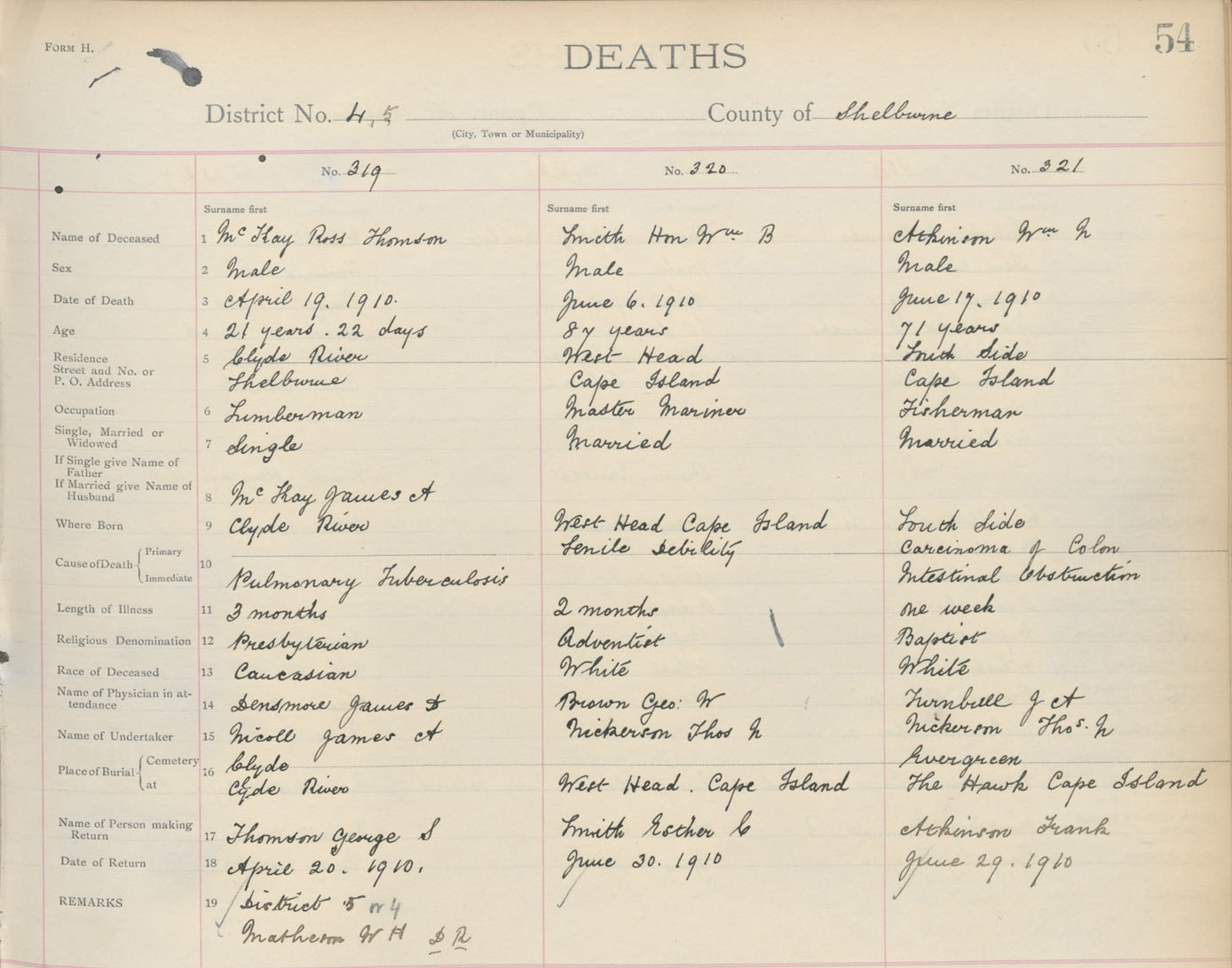 Death Registration: Year: 1910 book: 17 page: 54 number: 321