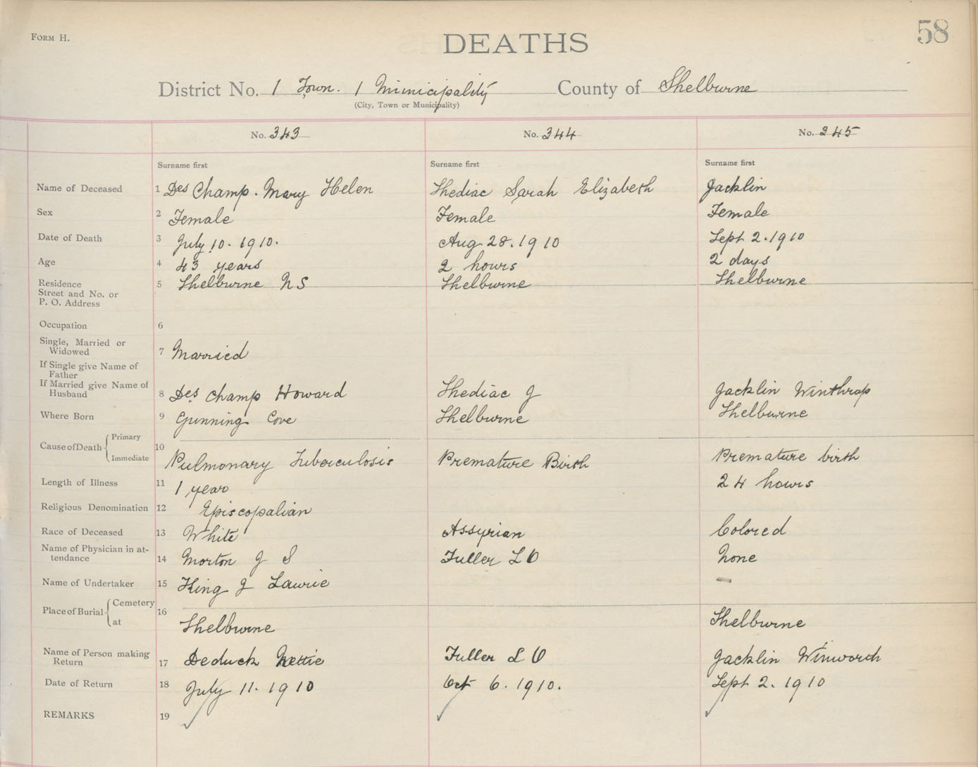 Death Registration: Year: 1910 book: 17 page: 58 number: 345