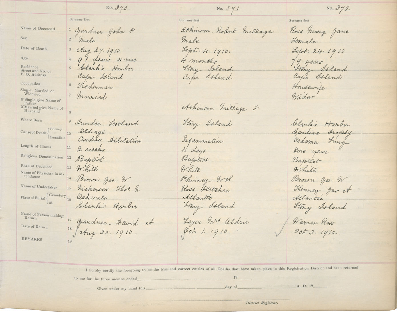 Death Registration: Year: 1910 book: 17 page: 62 number: 372