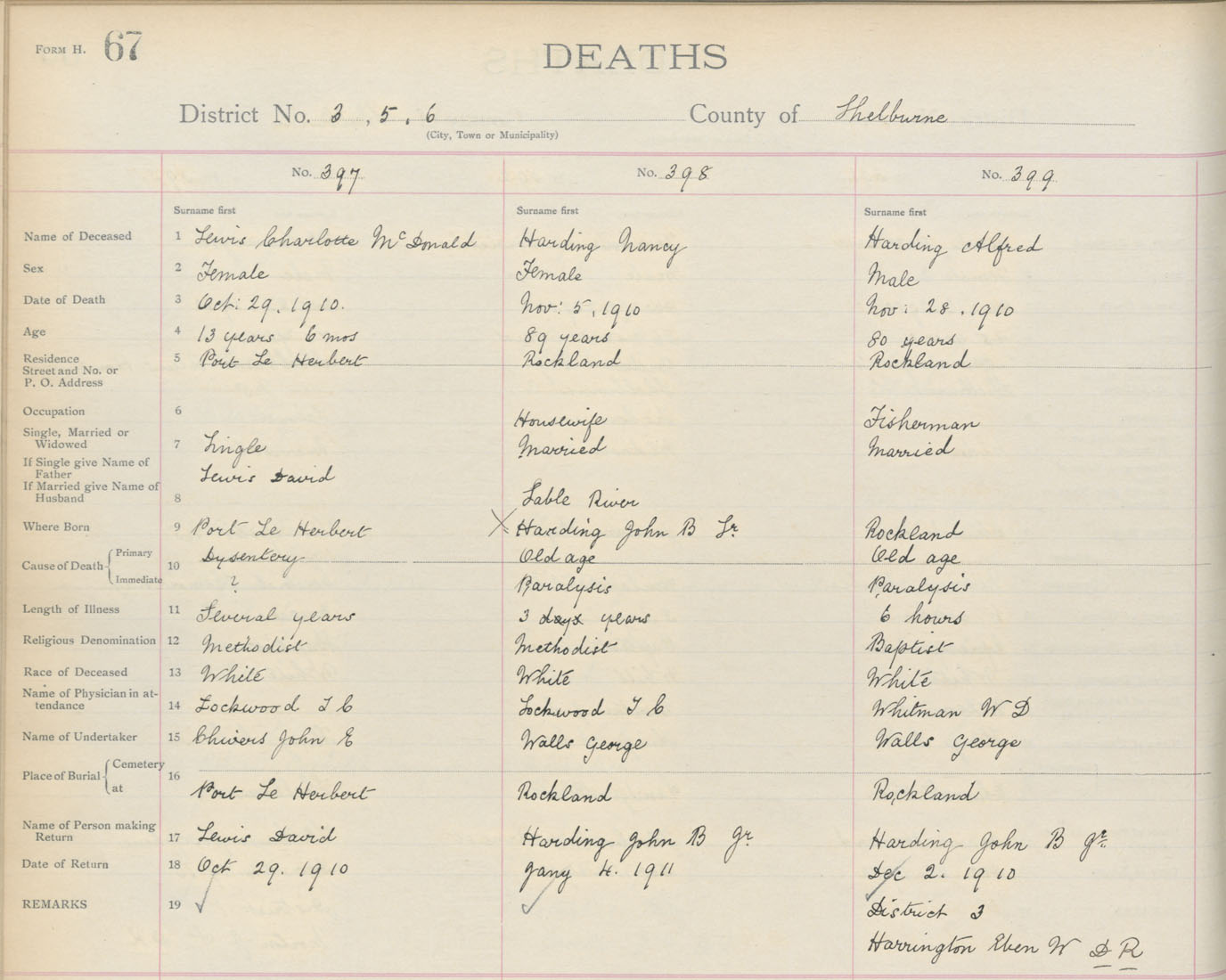 Death Registration: Year: 1910 book: 17 page: 67 number: 399
