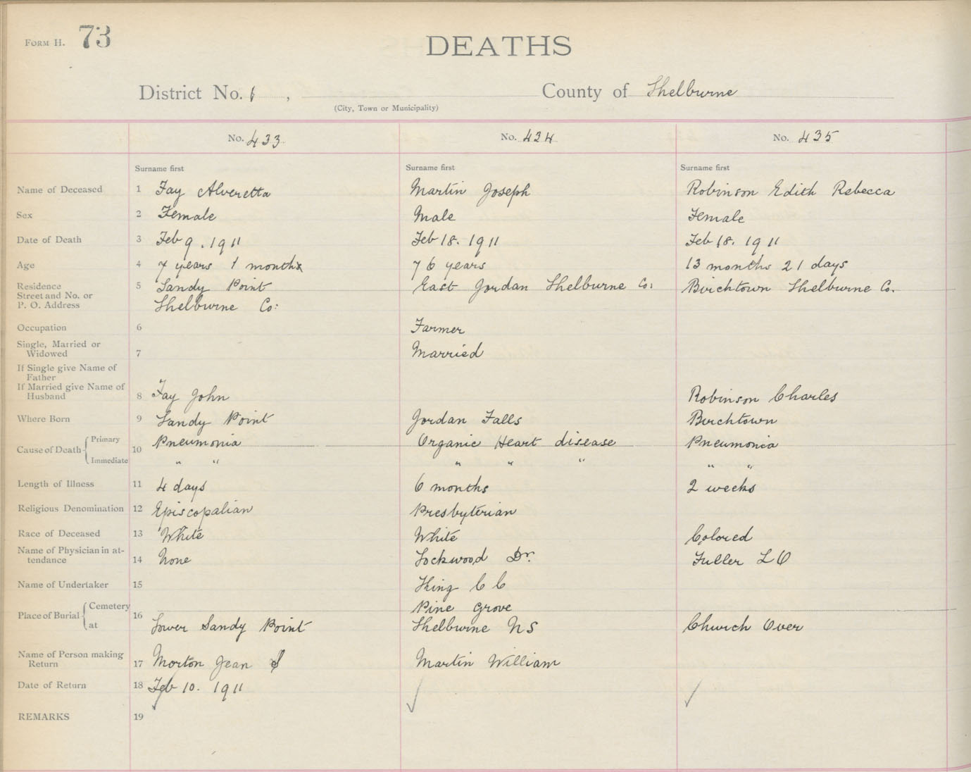 Death Registration: Year: 1911 book: 17 page: 73 number: 435