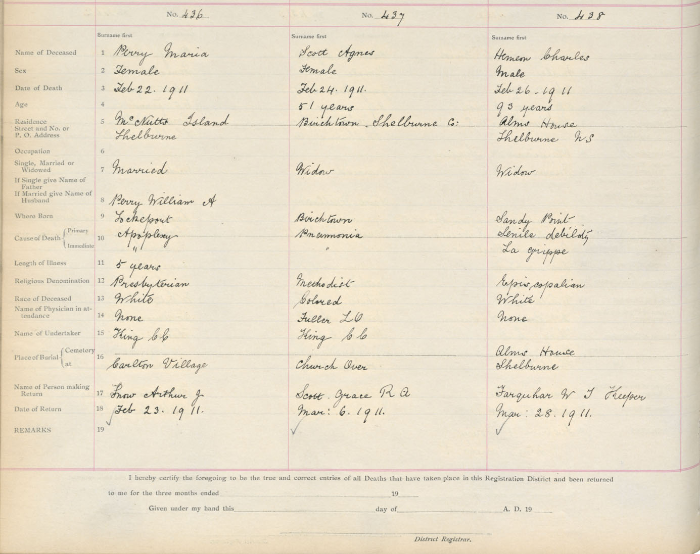 Death Registration: Year: 1911 book: 17 page: 73 number: 438