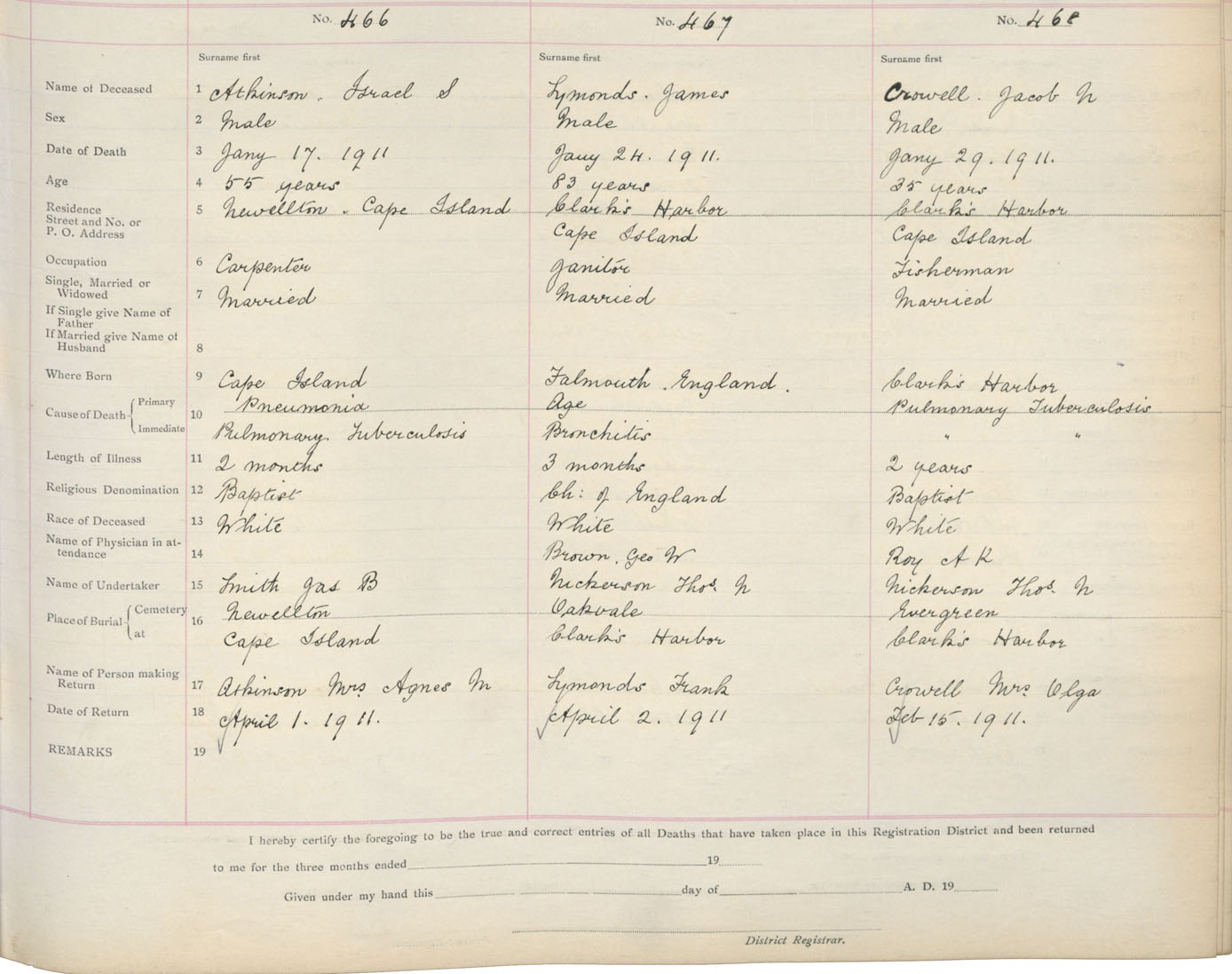 Death Registration: Year: 1911 book: 17 page: 78 number: 467