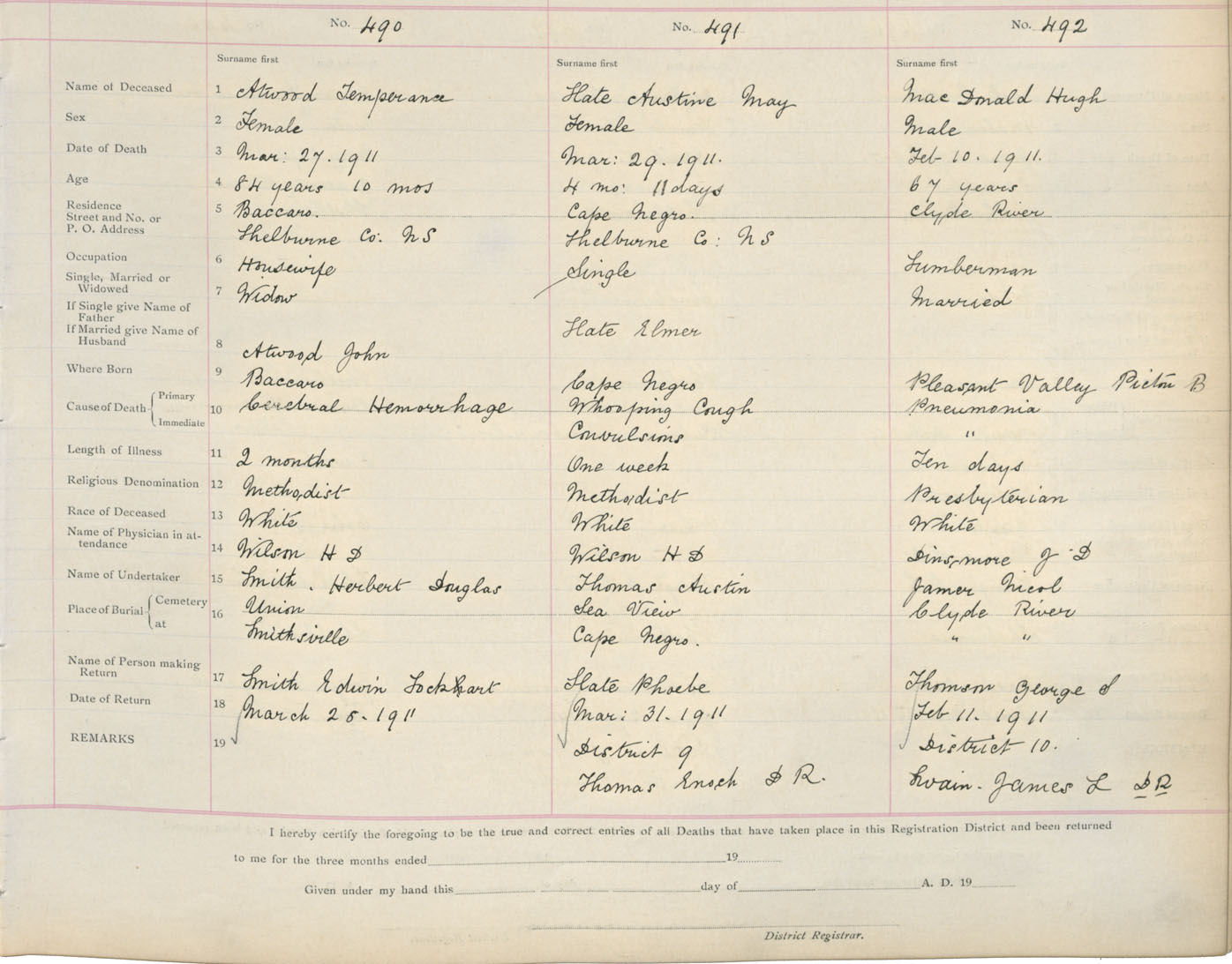 Death Registration: Year: 1911 book: 17 page: 82 number: 490