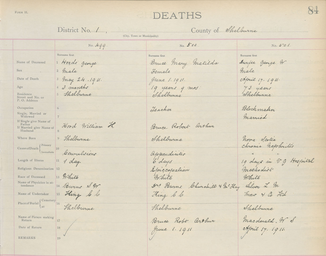 Death Registration: Year: 1911 book: 17 page: 84 number: 499
