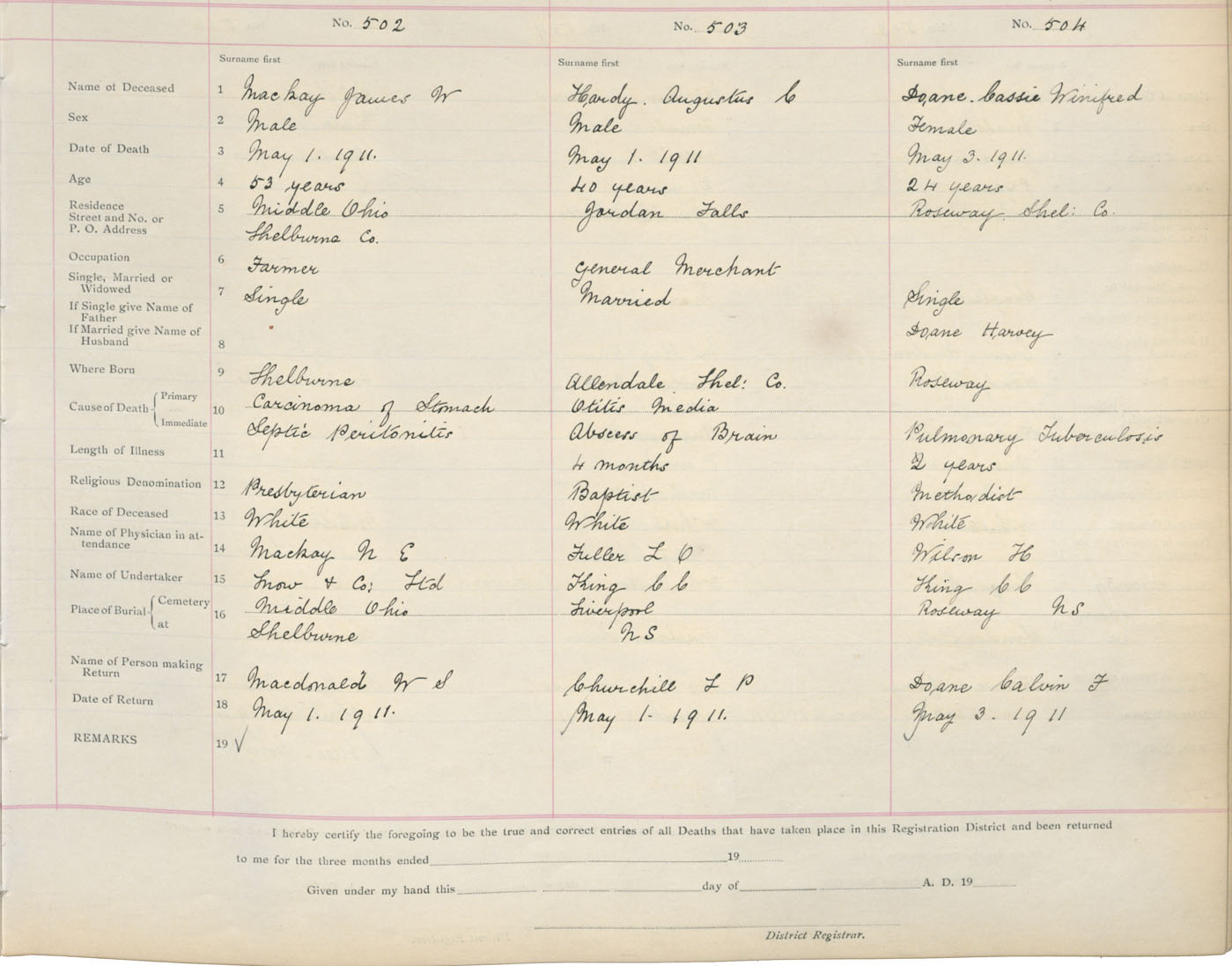 Death Registration: Year: 1911 book: 17 page: 84 number: 502