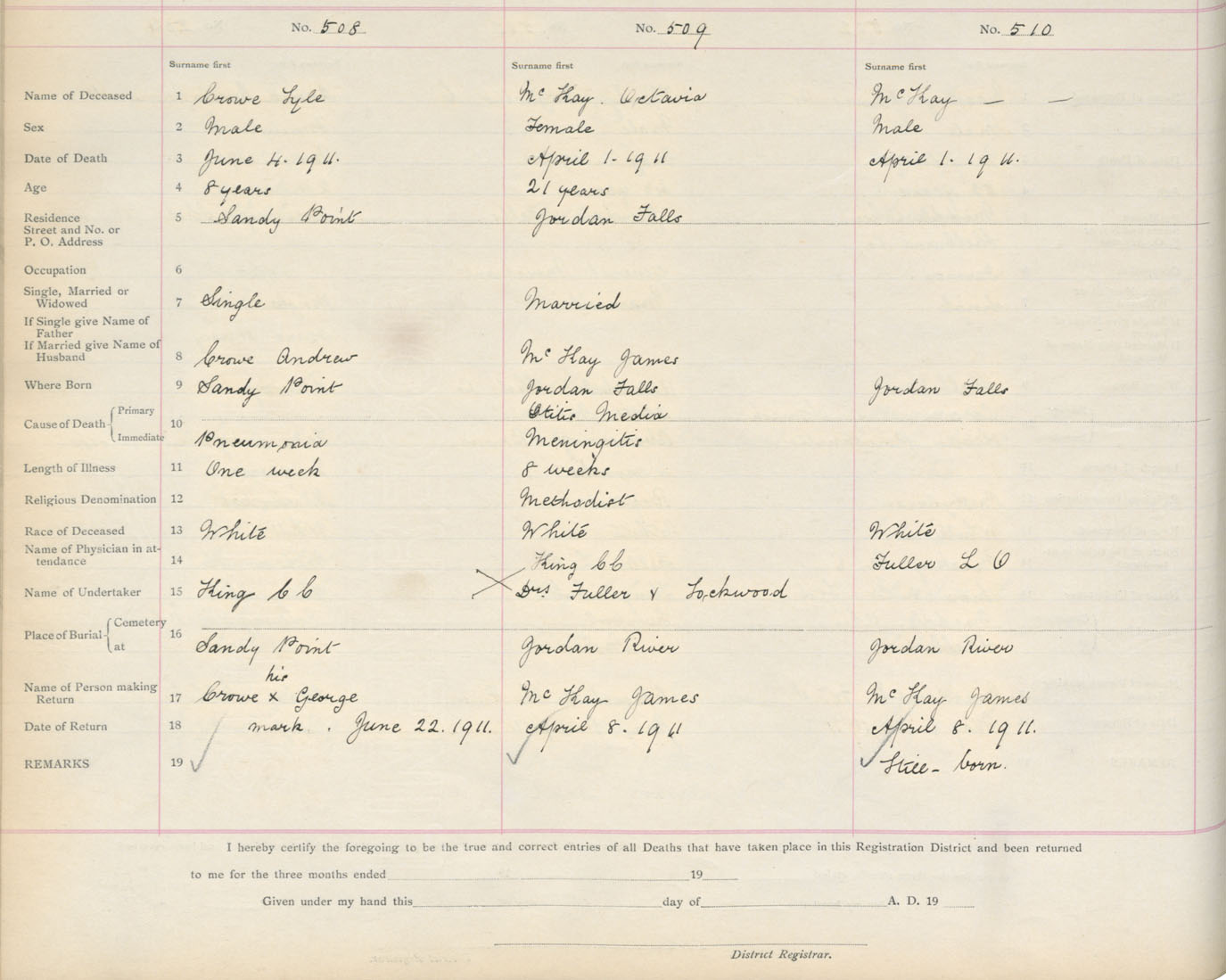 Death Registration: Year: 1911 book: 17 page: 85 number: 508