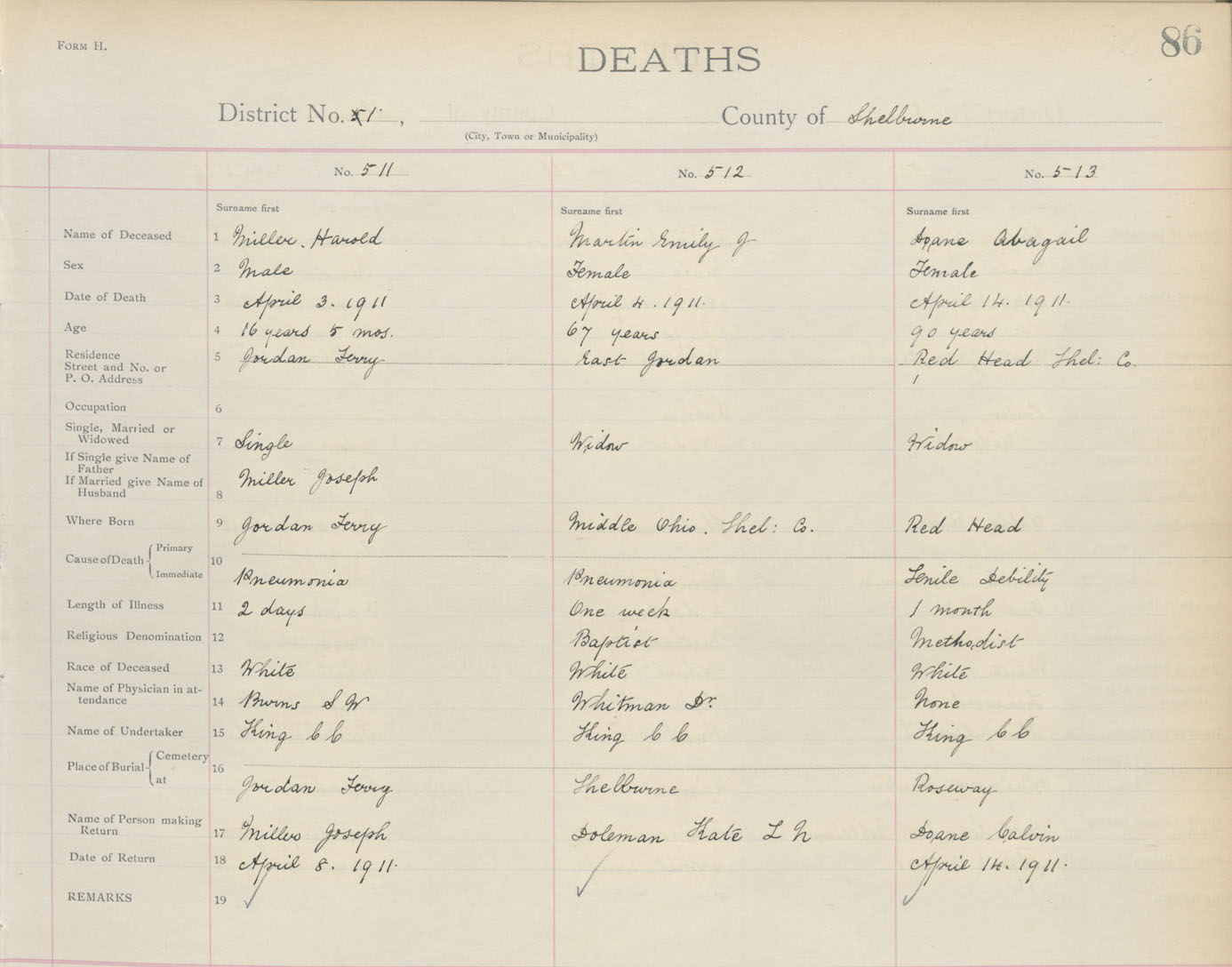 Death Registration: Year: 1911 book: 17 page: 86 number: 511