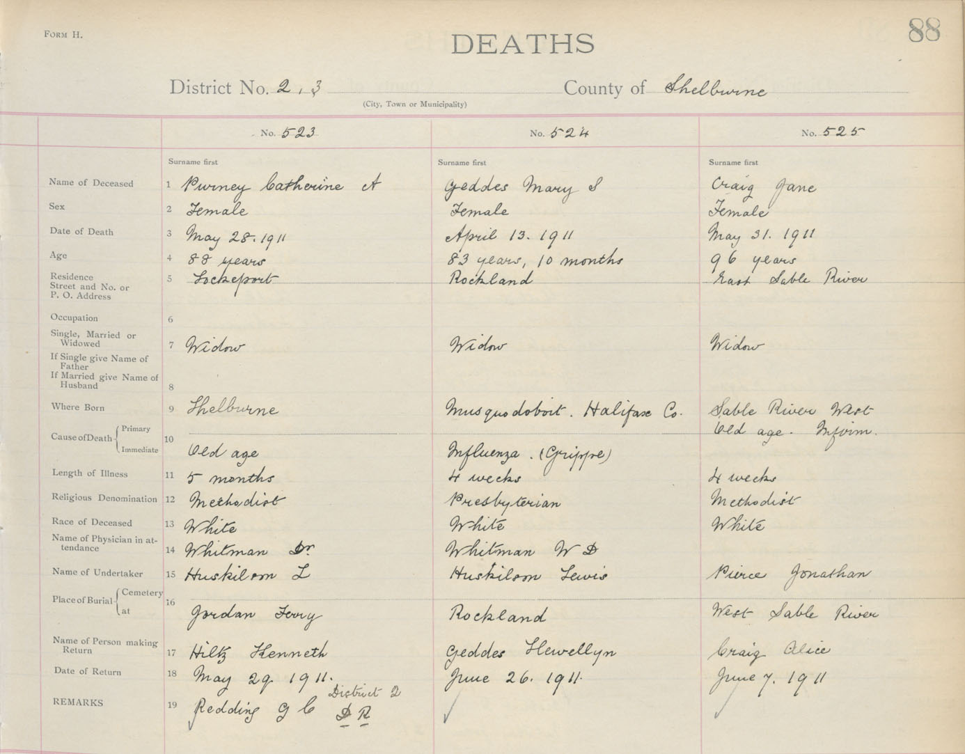 Death Registration: Year: 1911 book: 17 page: 88 number: 523