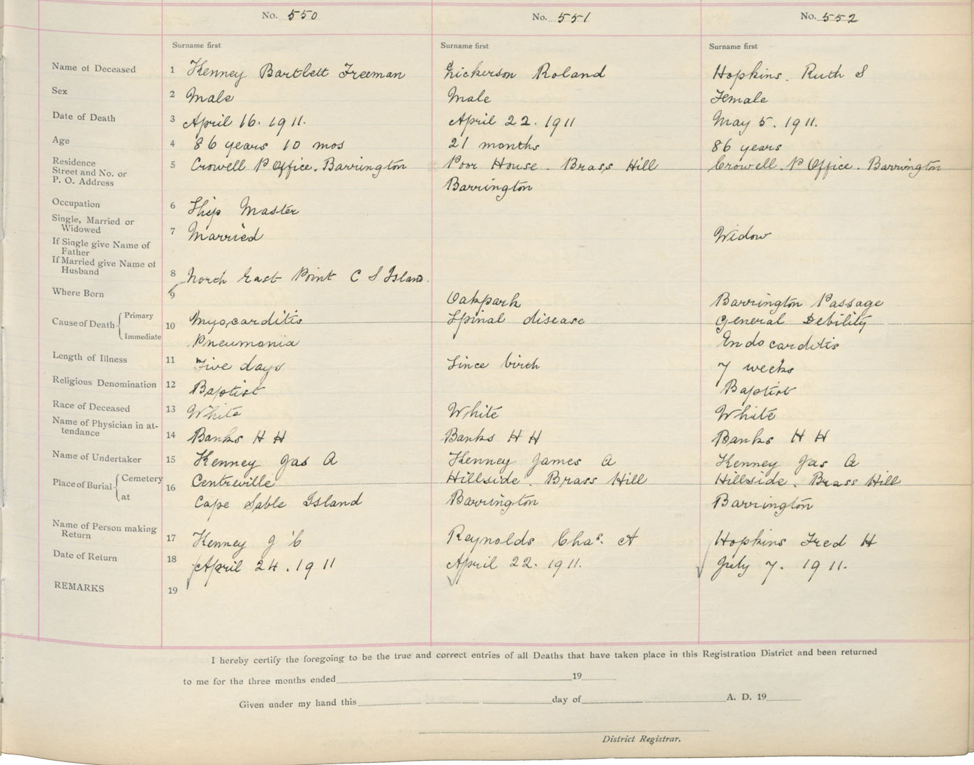 Death Registration: Year: 1911 book: 17 page: 92 number: 550