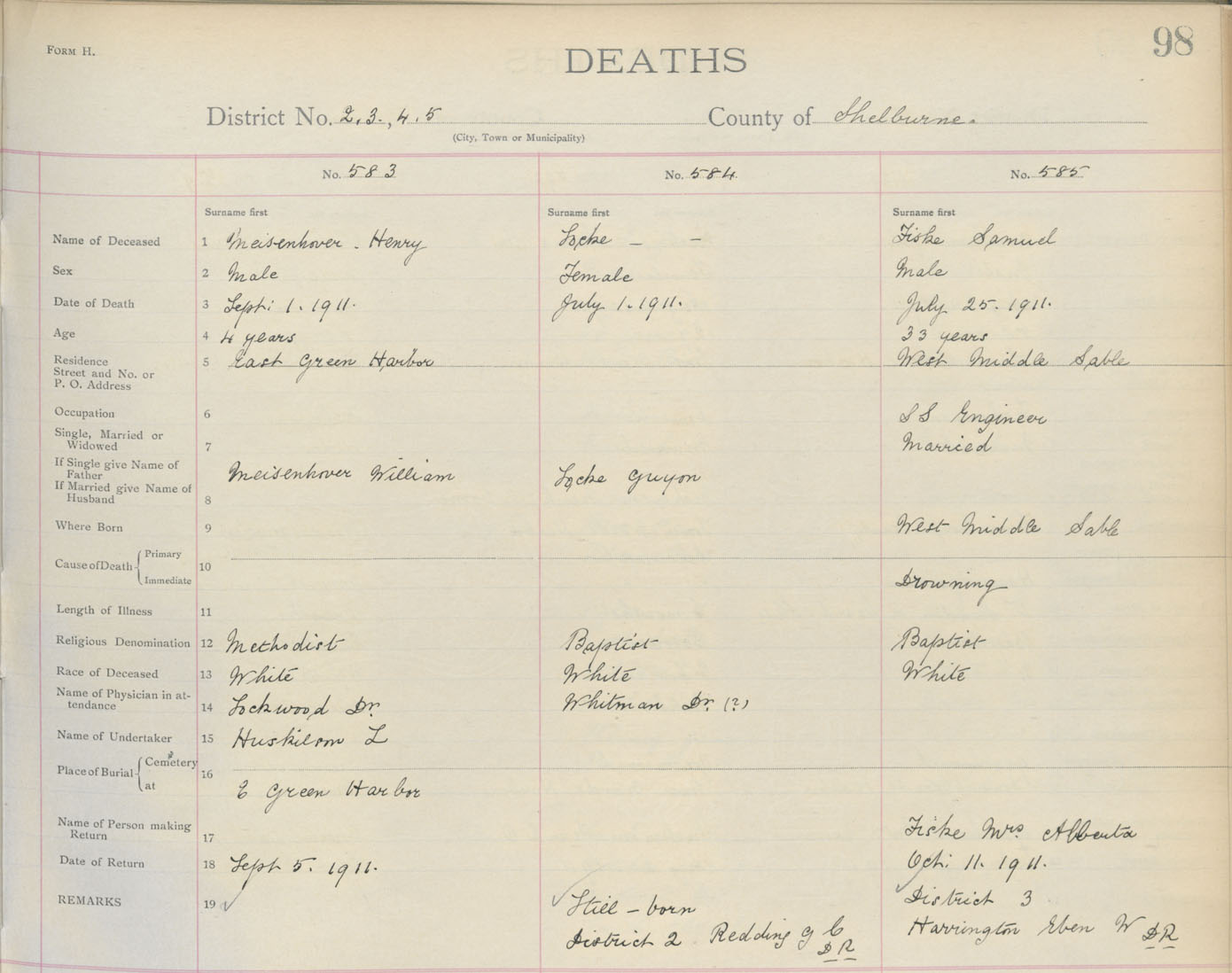Male Death Registration: Year: 1911 book: 17 page: 98 number: 583