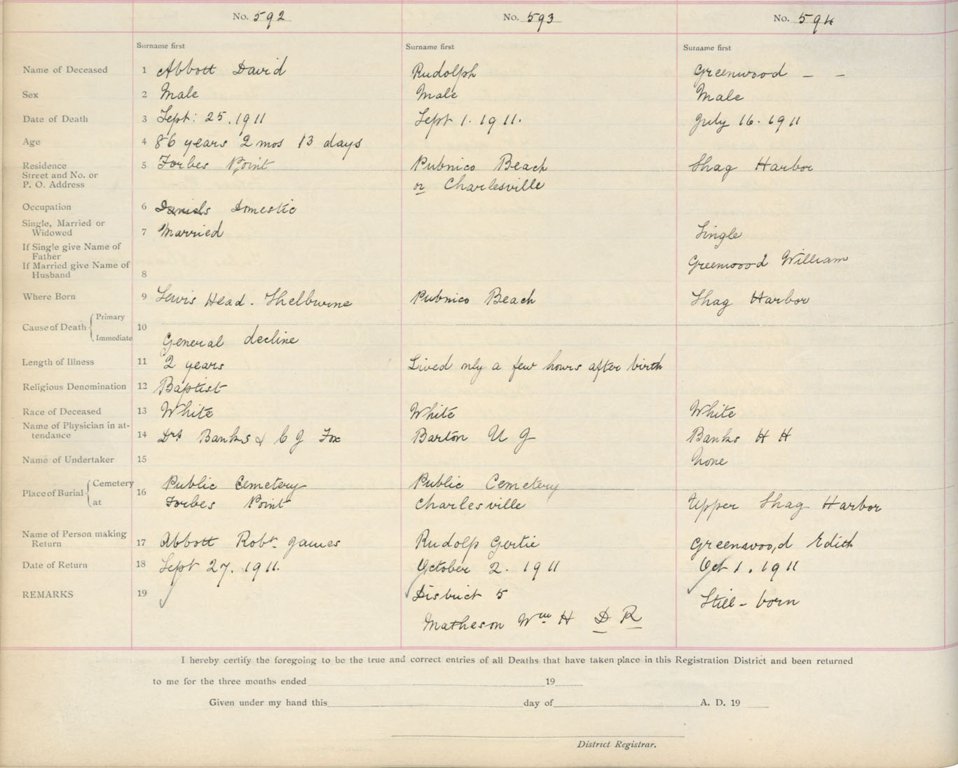 Death Registration: Year: 1911 book: 17 page: 99 number: 592