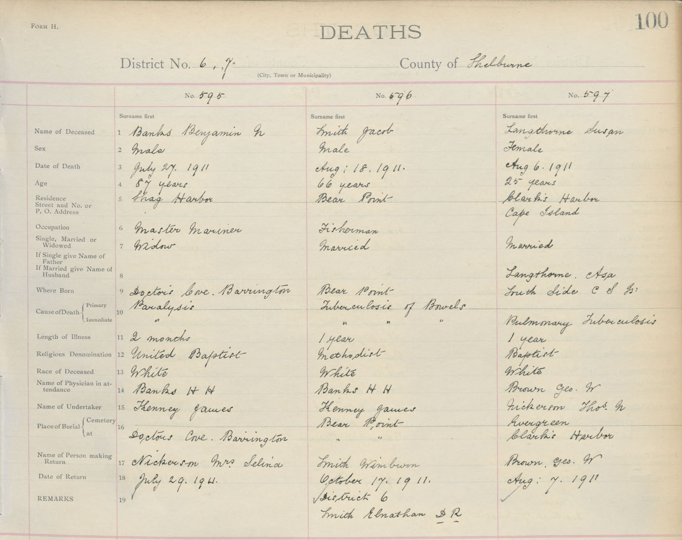 Death Registration: Year: 1911 book: 17 page: 100 number: 595