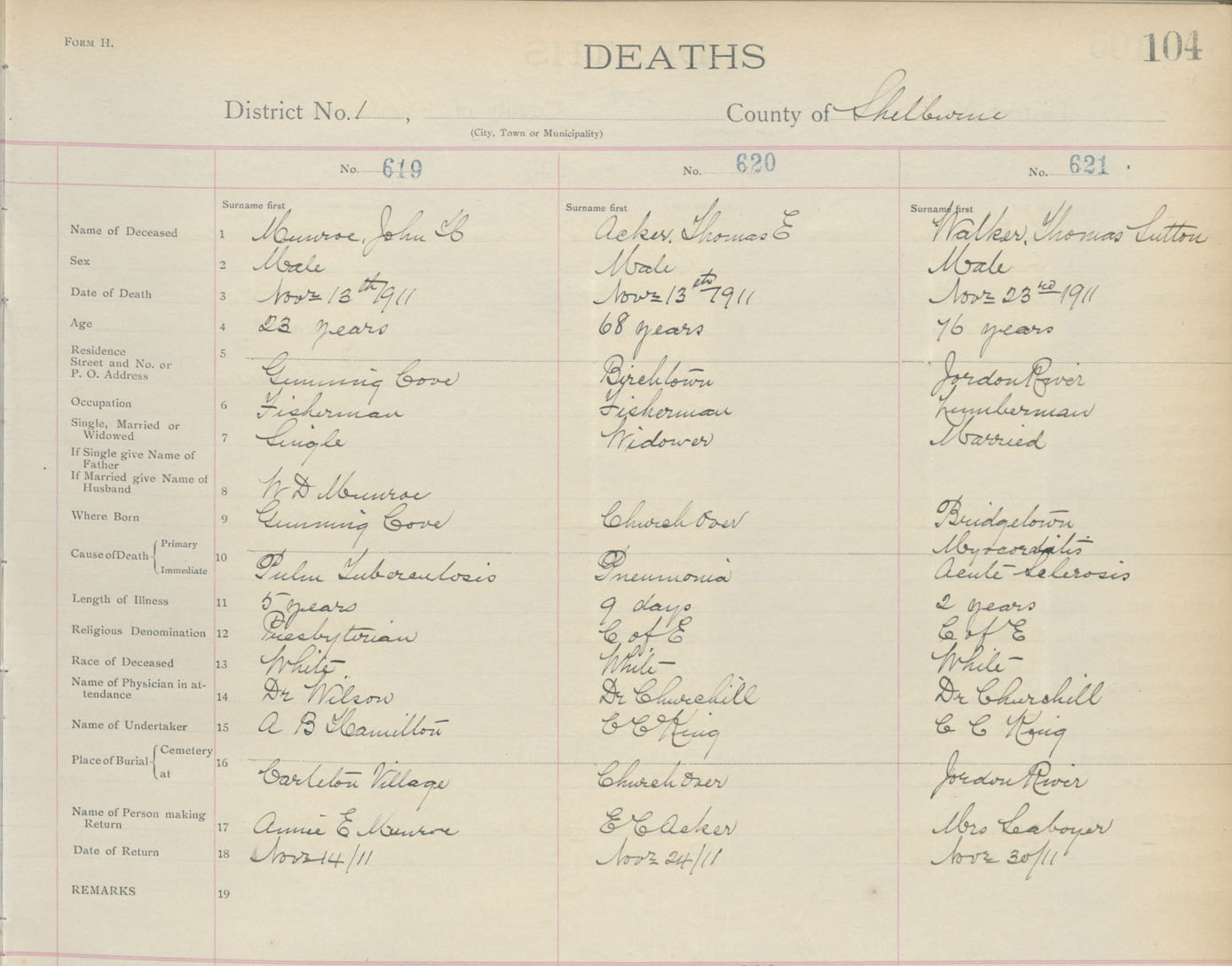 Death Registration: Year: 1911 book: 17 page: 104 number: 619