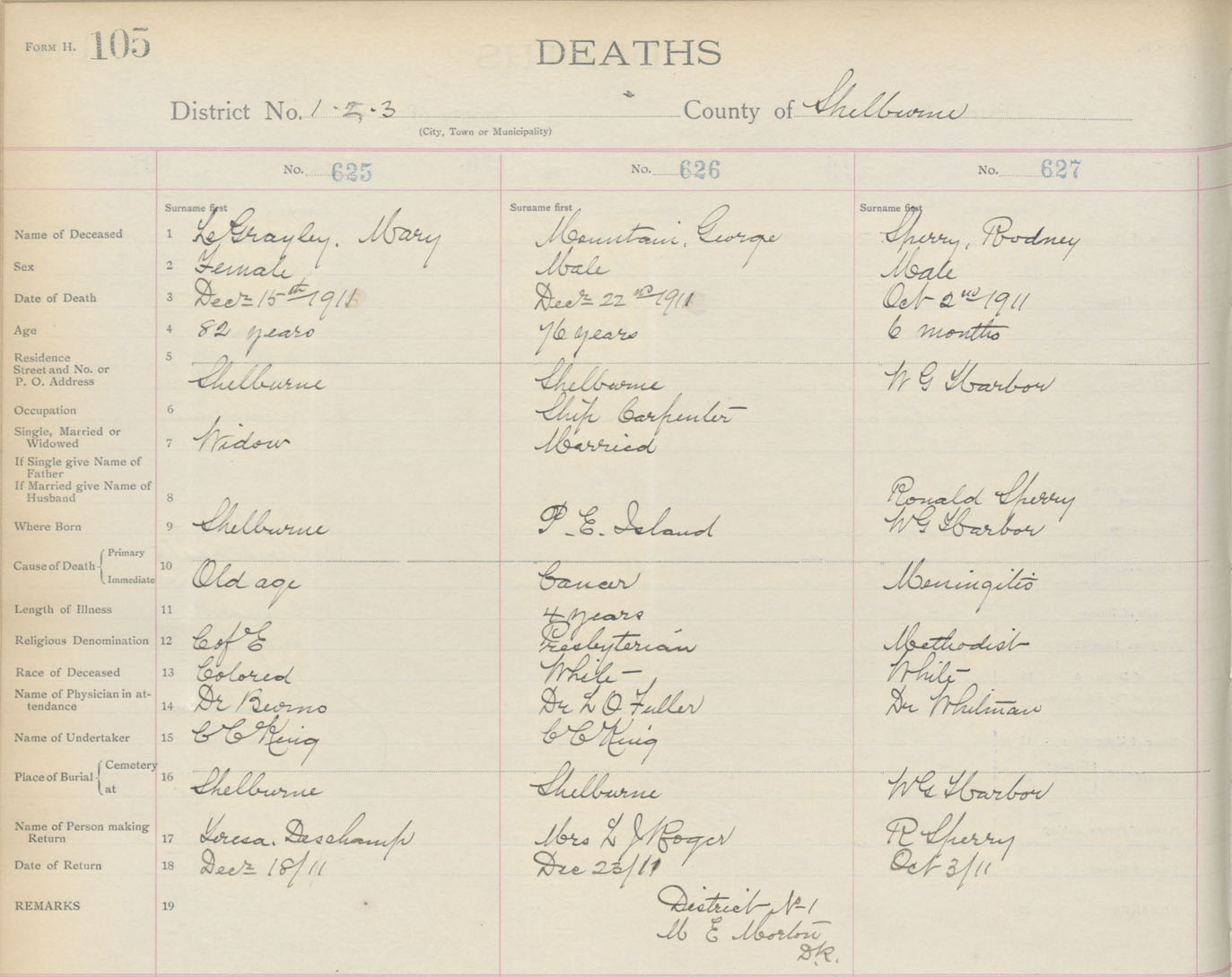 Death Registration: Year: 1911 book: 17 page: 105 number: 625