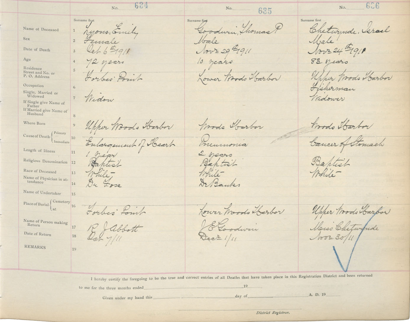 Death Registration: Year: 1911 book: 17 page: 106 number: 634