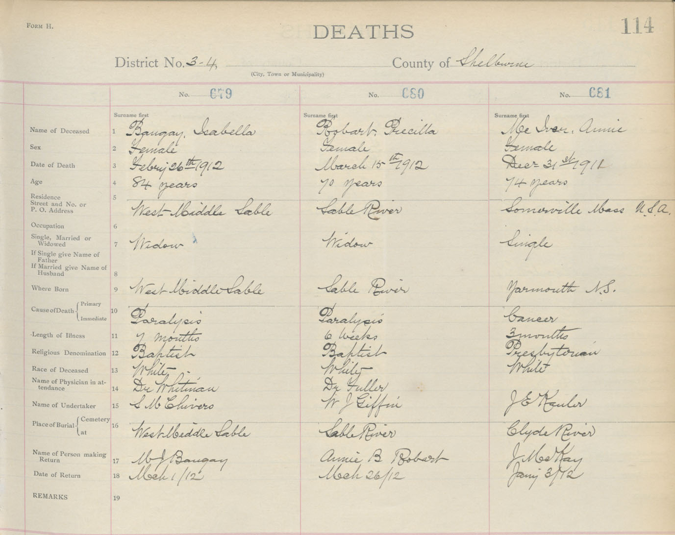 Death Registration: Year: 1912 book: 17 page: 114 number: 679
