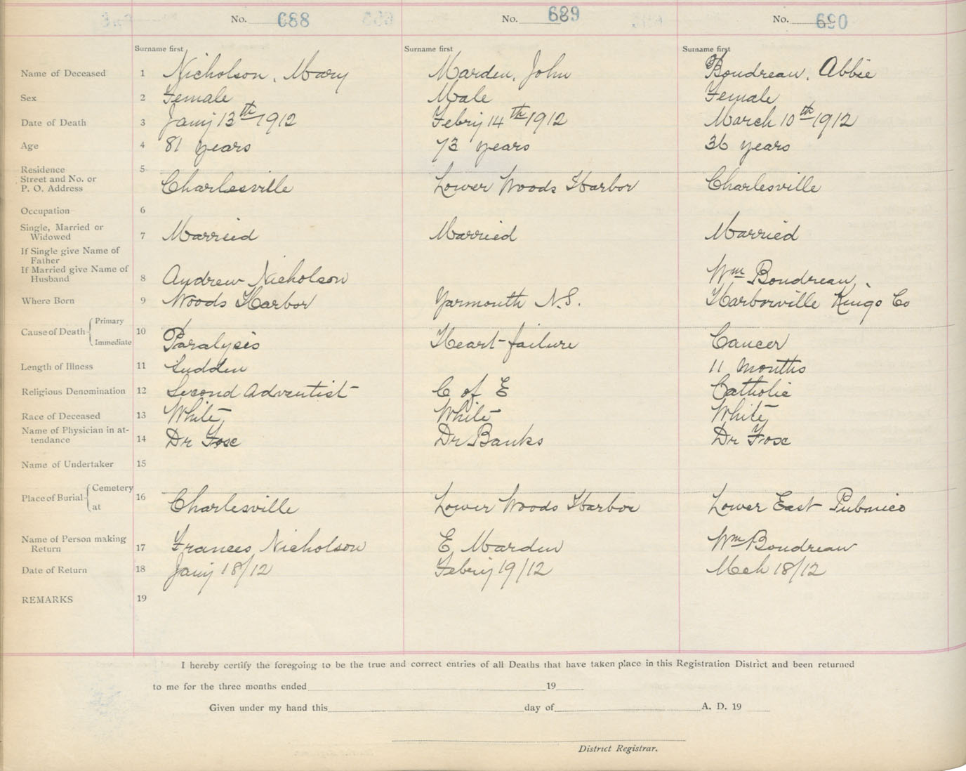 Death Registration: Year: 1912 book: 17 page: 115 number: 688