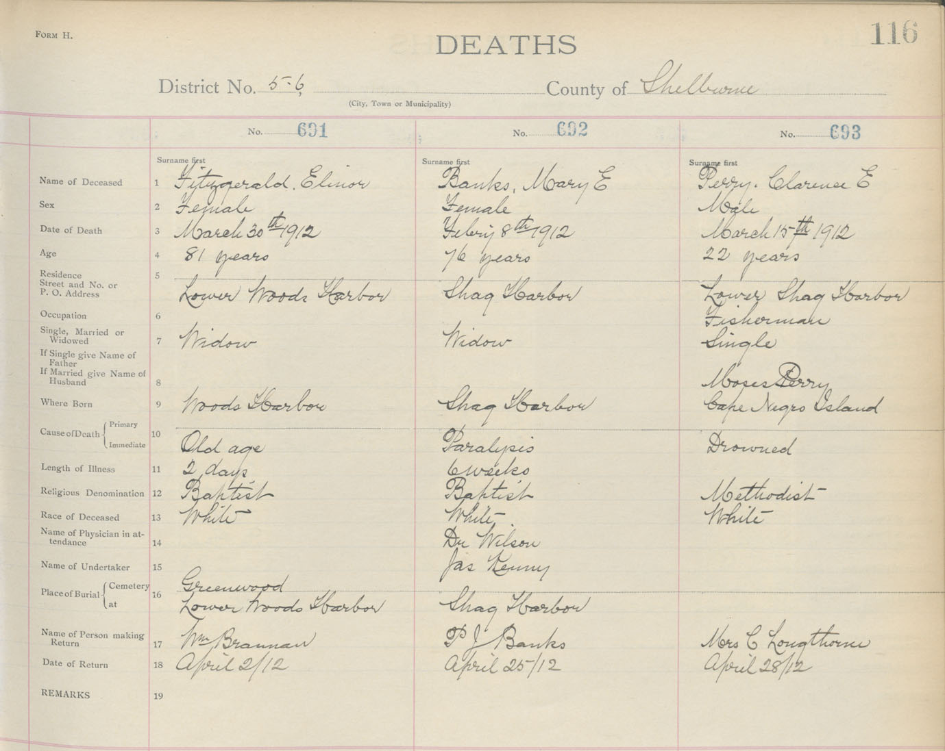 Death Registration: Year: 1912 book: 17 page: 116 number: 691