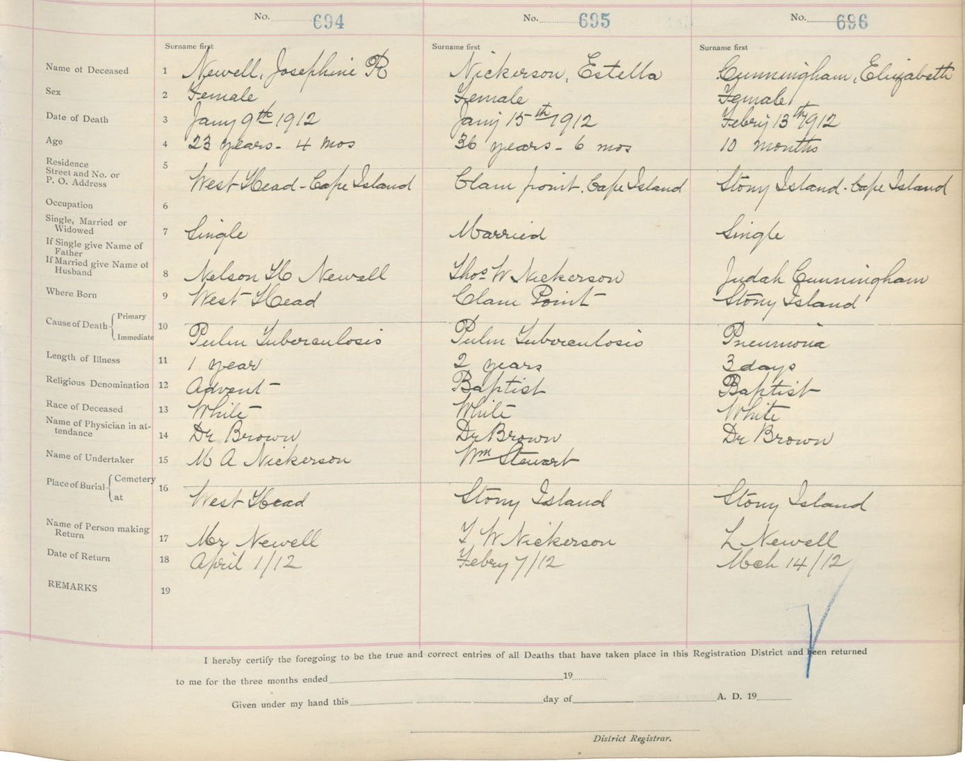 Male Death Registration: Year: 1912 book: 17 page: 116 number: 694