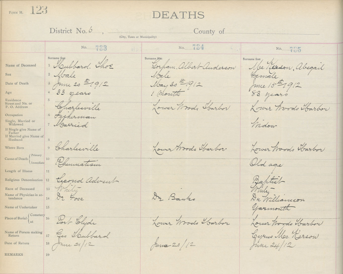 Death Registration: Year: 1912 book: 17 page: 123 number: 733