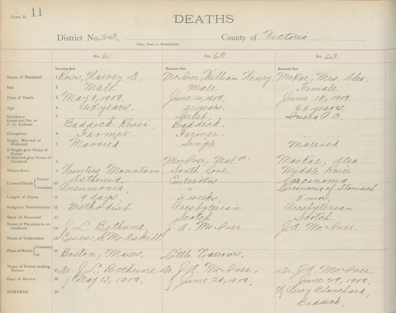 Death Registration: Year: 1909 book: 18 page: 11 number: 63