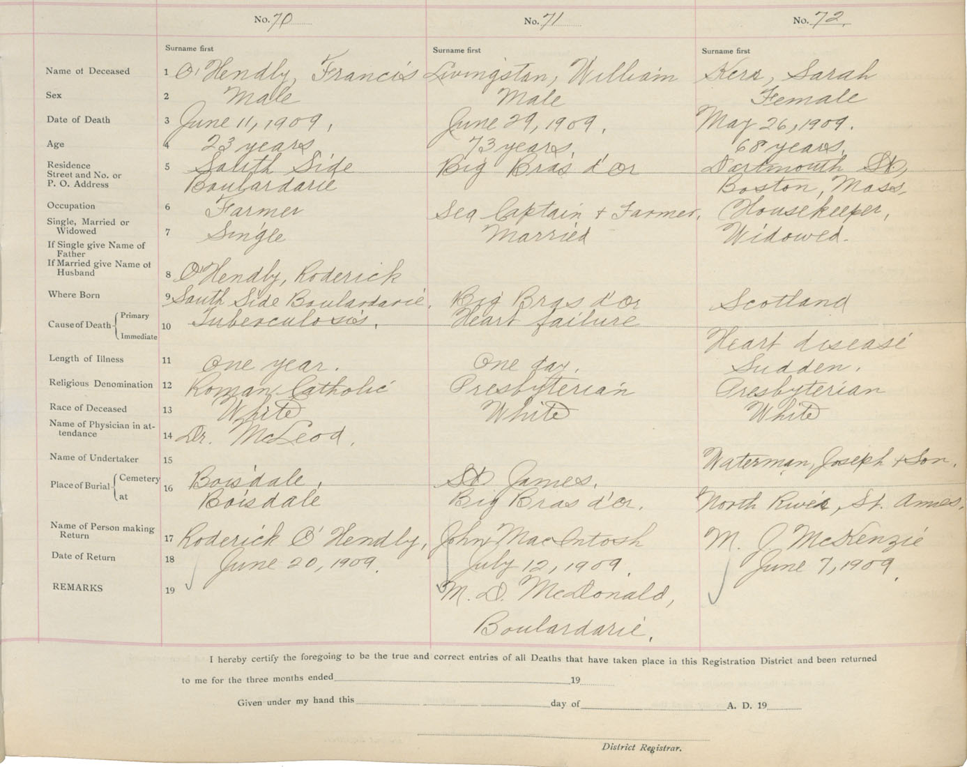 Death Registration: Year: 1909 book: 18 page: 12 number: 72