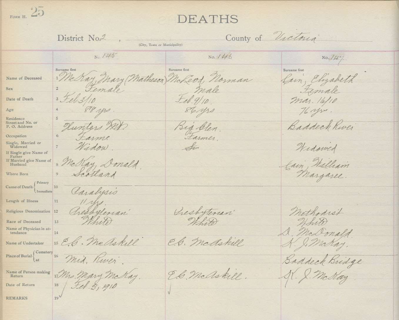 Female Death Registration: Year: 1910 book: 18 page: 25 number: 147