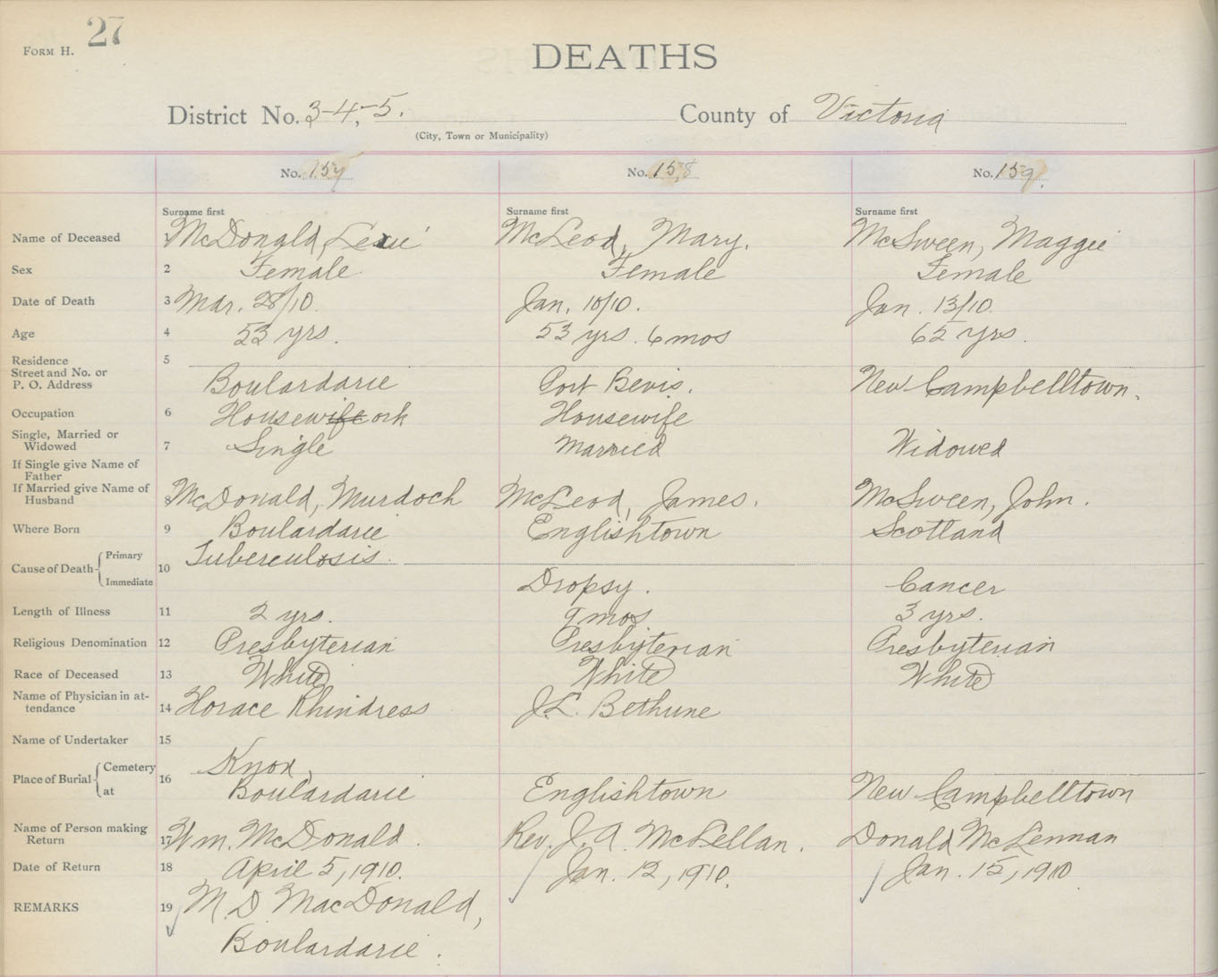 Death Registration: Year: 1910 book: 18 page: 27 number: 159