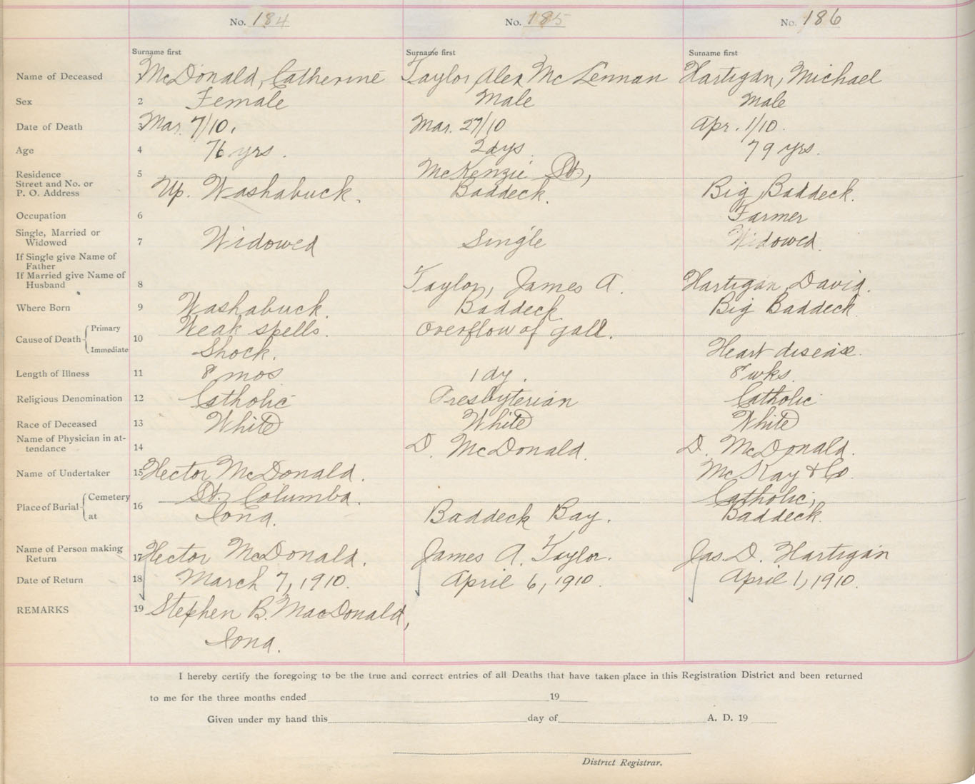 Death Registration: Year: 1910 book: 18 page: 31 number: 186