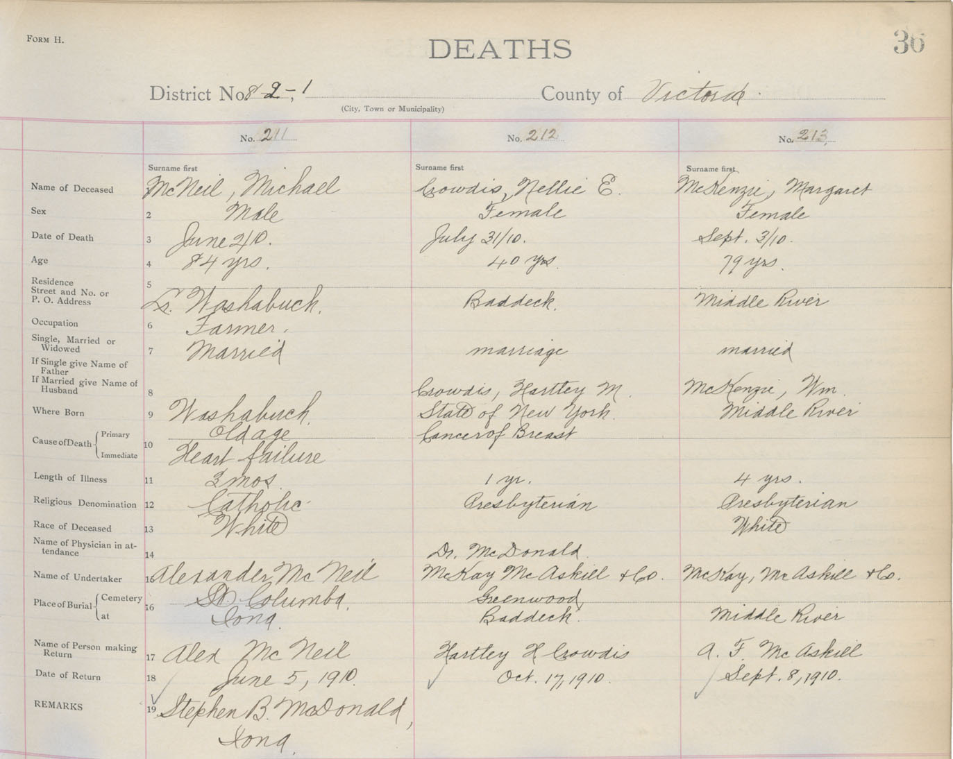 Death Registration: Year: 1910 book: 18 page: 36 number: 213