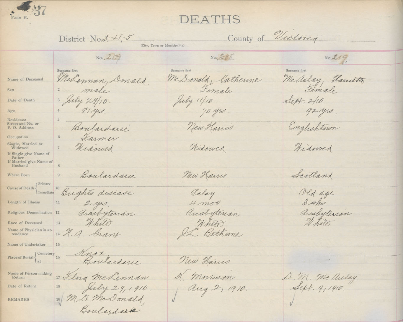 Death Registration: Year: 1910 book: 18 page: 37 number: 219