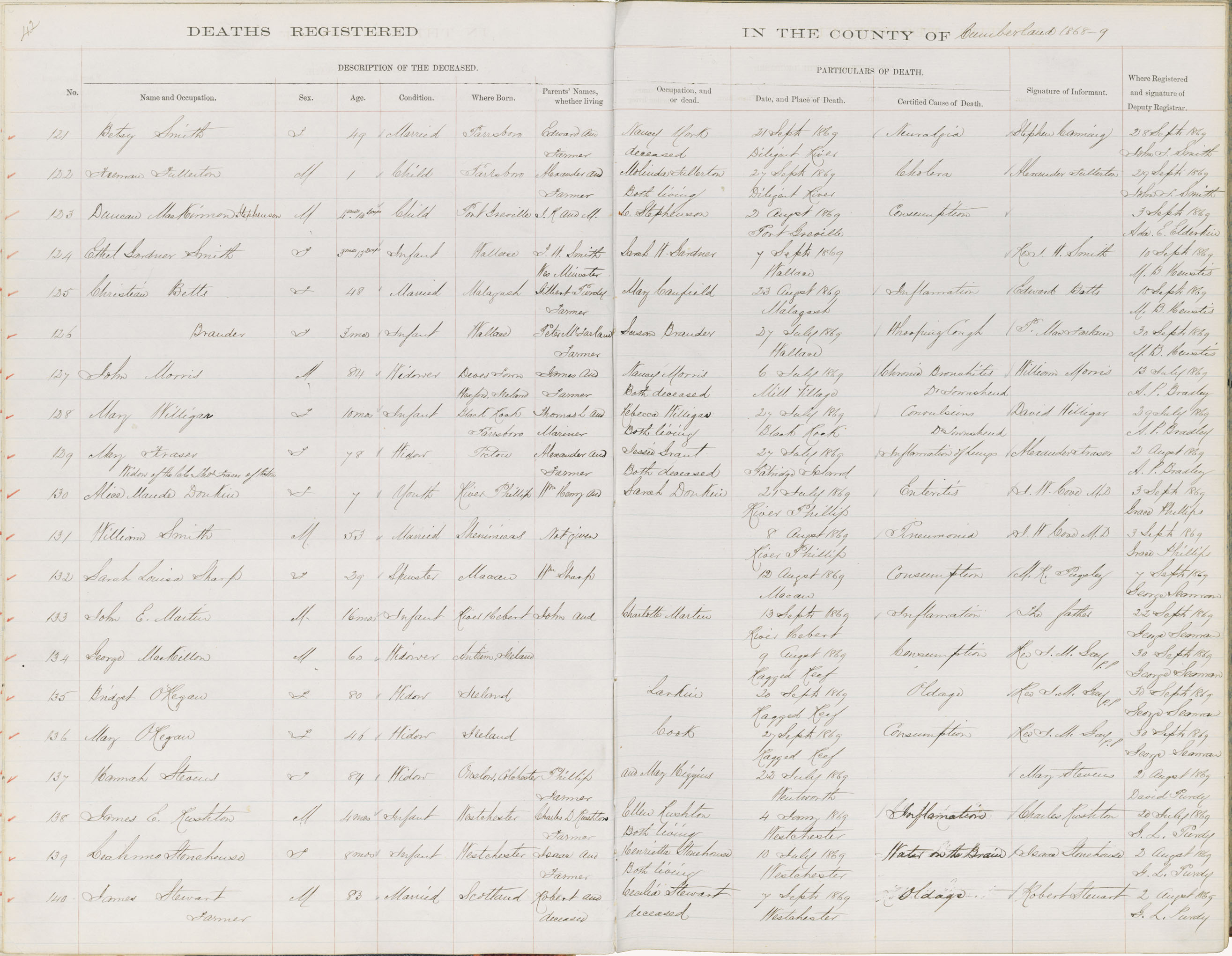Death Registration: Year: 1869 book: 1805 page: 42 number: 121