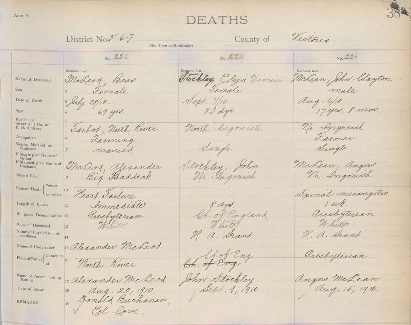 Death Registration: Year: 1910 book: 18 page: 38 number: 225